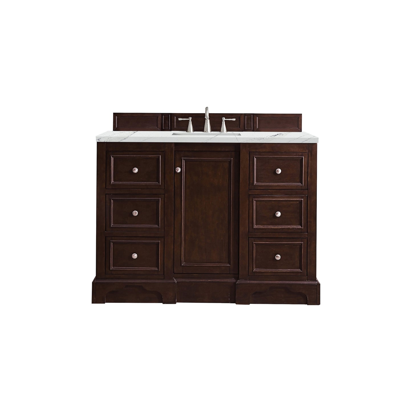 James Martin Vanities De Soto 48" Burnished Mahogany Single Vanity With 3cm Ethereal Noctis Quartz Top