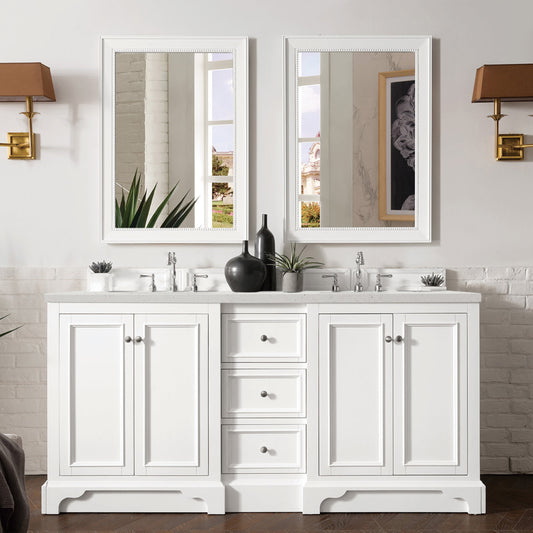 James Martin Vanities De Soto 72" Bright White Double Vanity With 3 cm Lime Delight Quartz Top