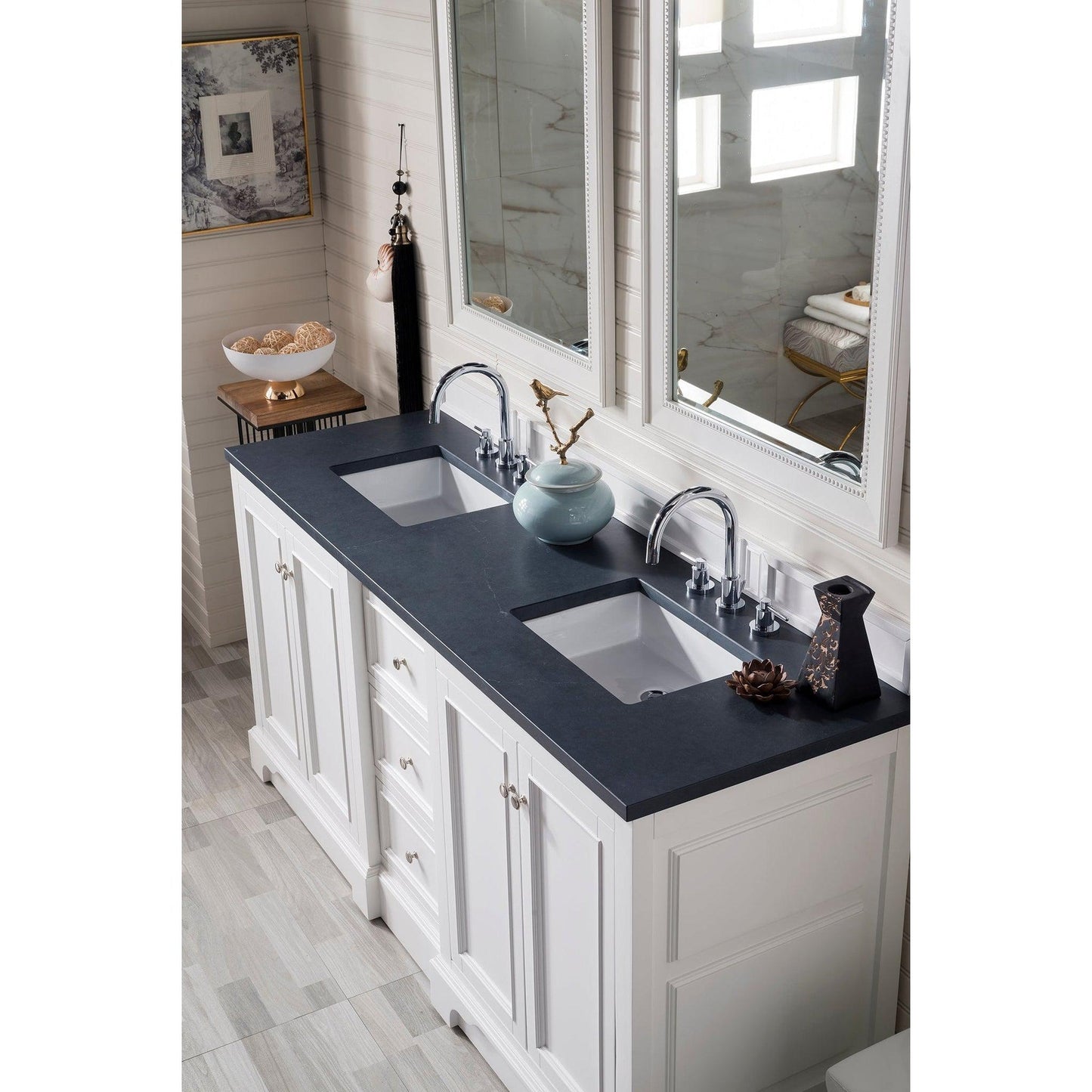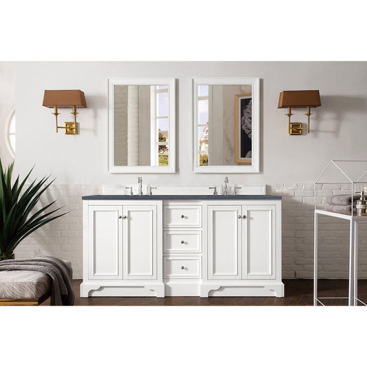 James Martin Vanities De Soto 72" Bright White Double Vanity With 3cm Charcoal Soapstone Quartz Top
