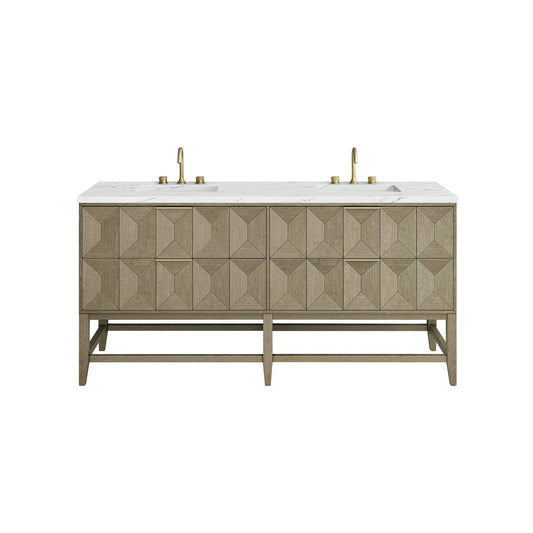 James Martin Vanities Emmeline 72" Pebble Oak Double Vanity With 3 cm Etehreal Noctis Top