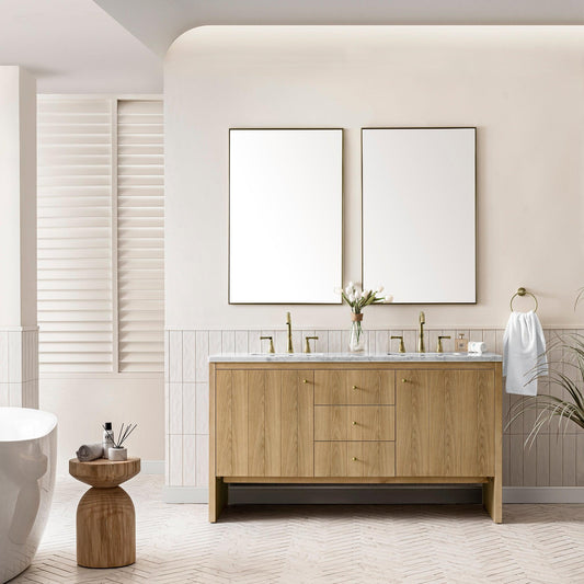 James Martin Vanities Hudson 60" Light Natural Oak Double Vanity With 3cm Arctic Fall Top