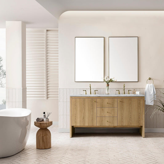 James Martin Vanities Hudson 60" Light Natural Oak Double Vanity With 3cm Ethereal Noctis Top