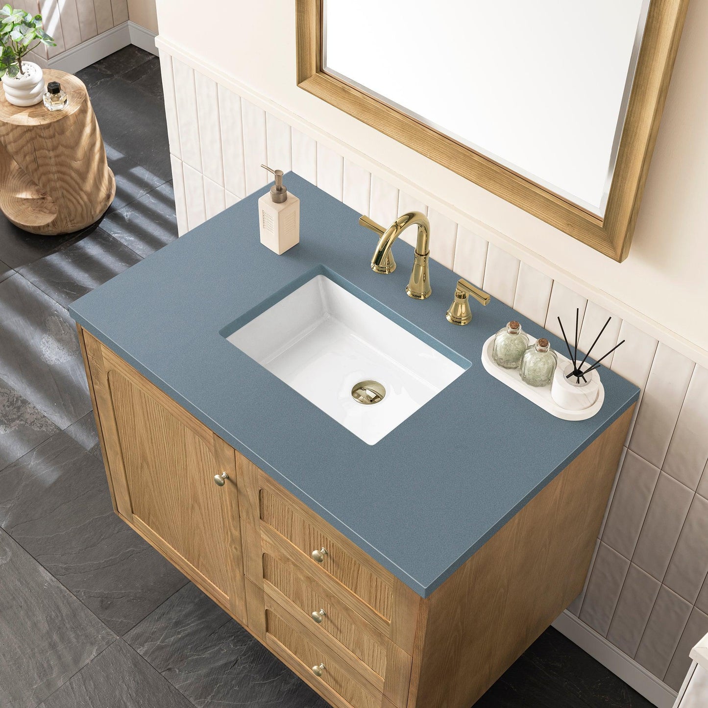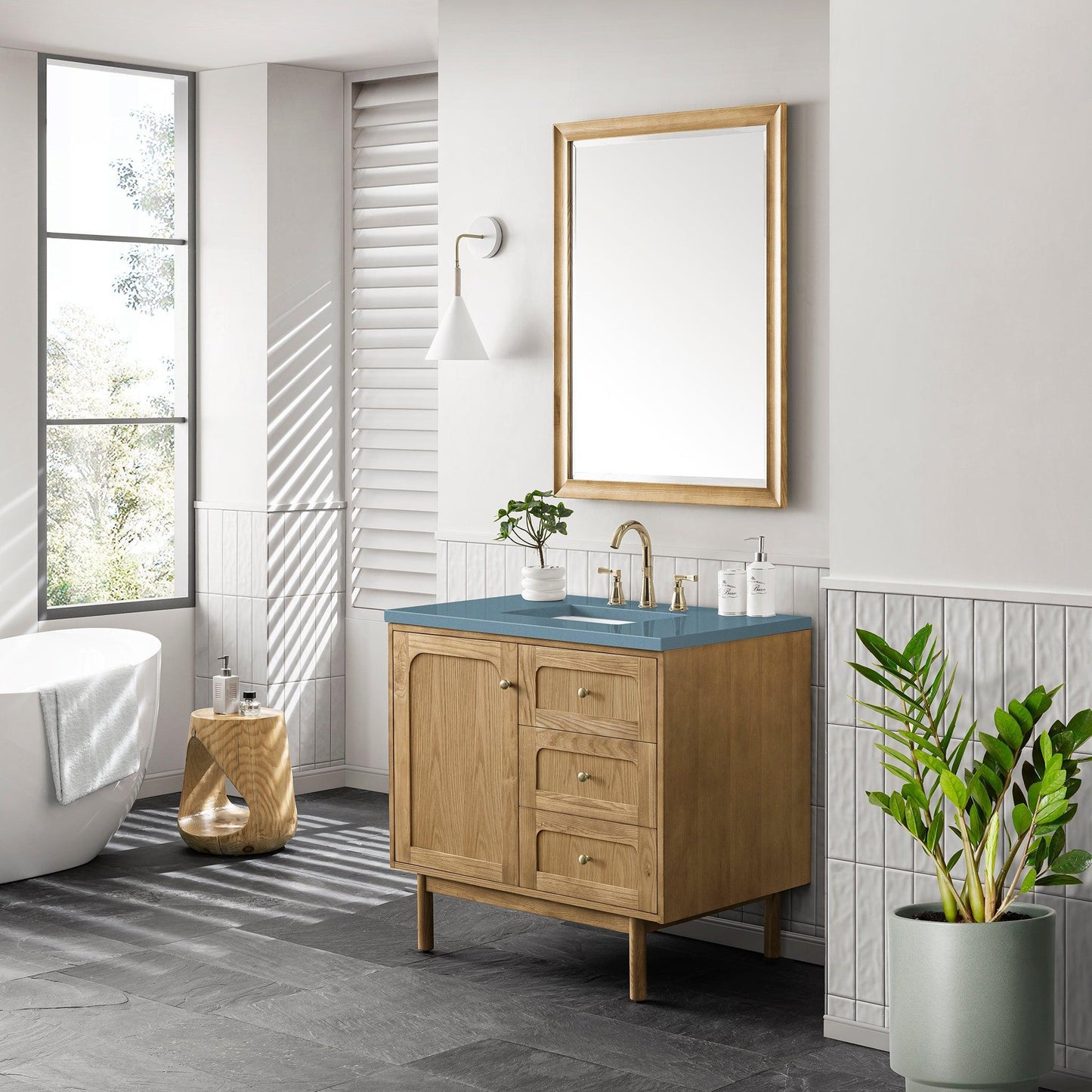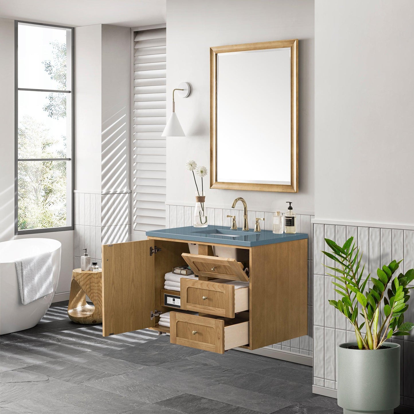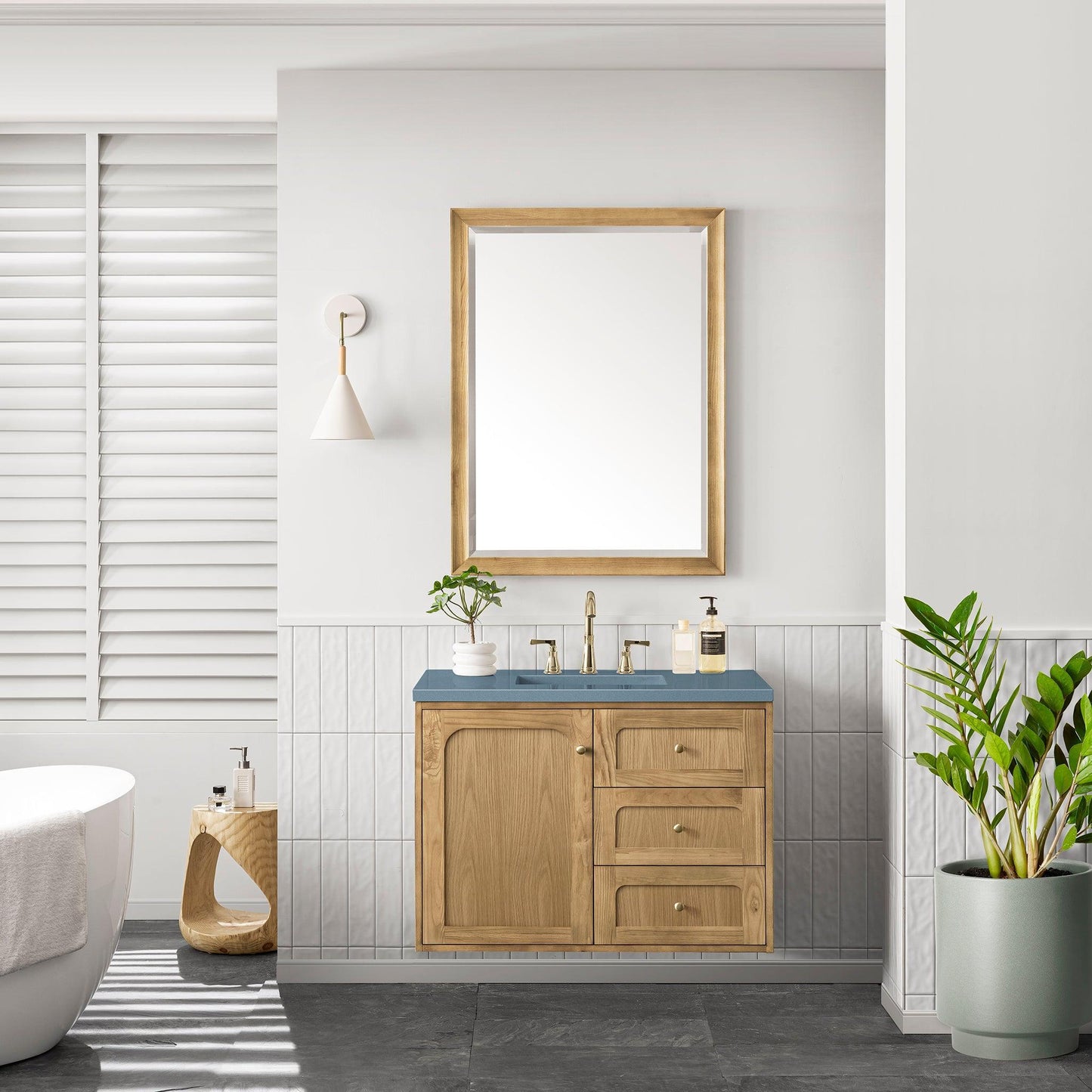 James Martin Vanities Laurent 36" Light Natural Oak Single Vanity With 3cm Cala Blue Top