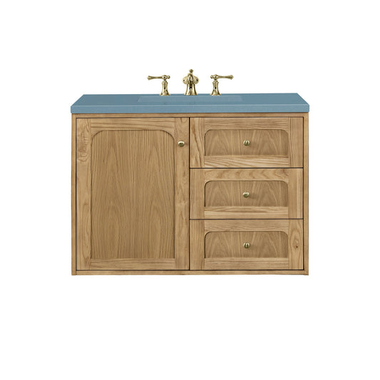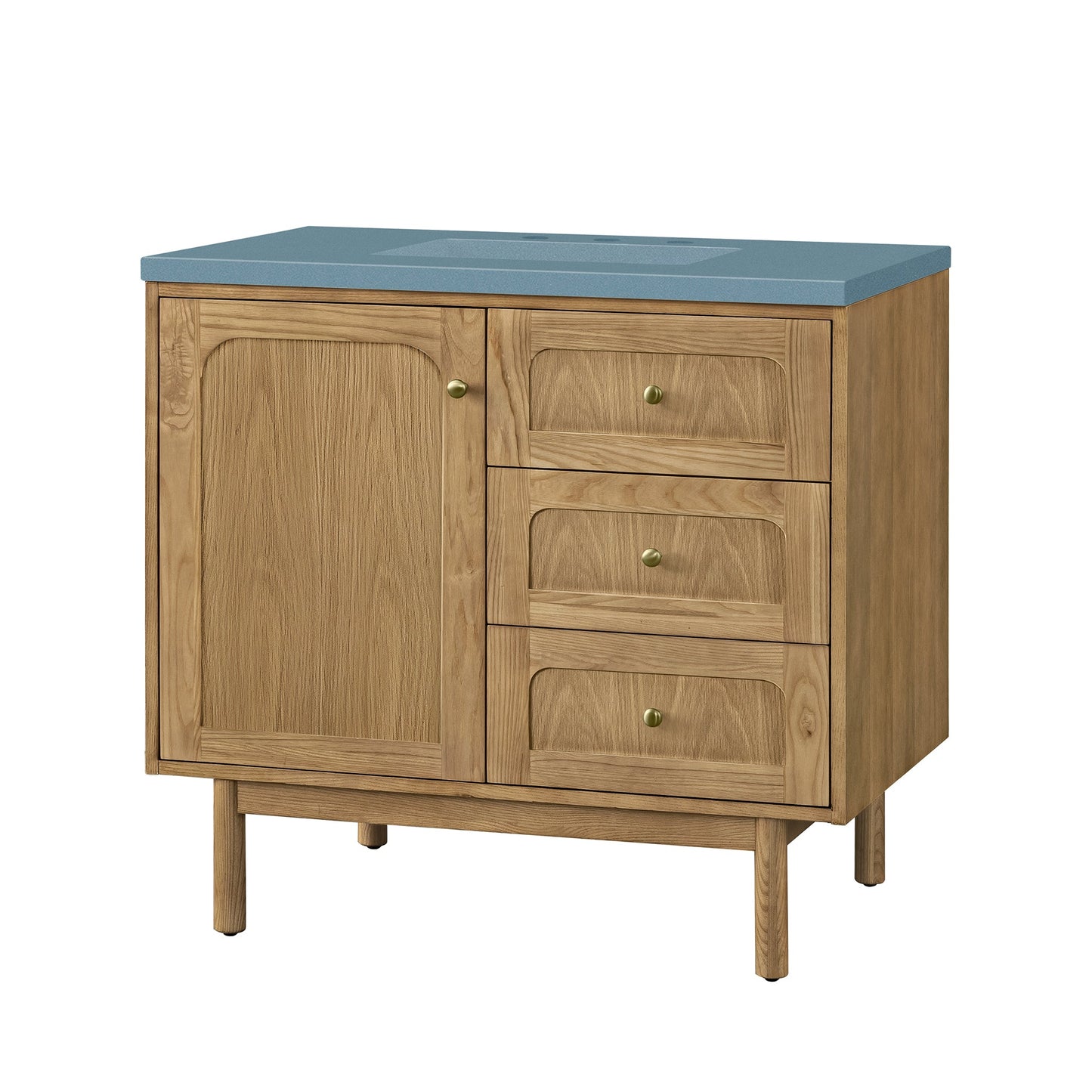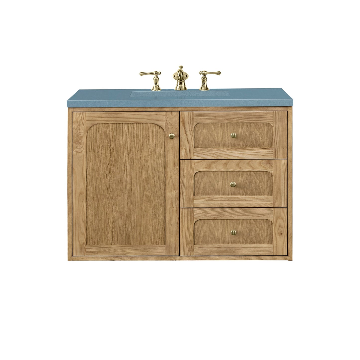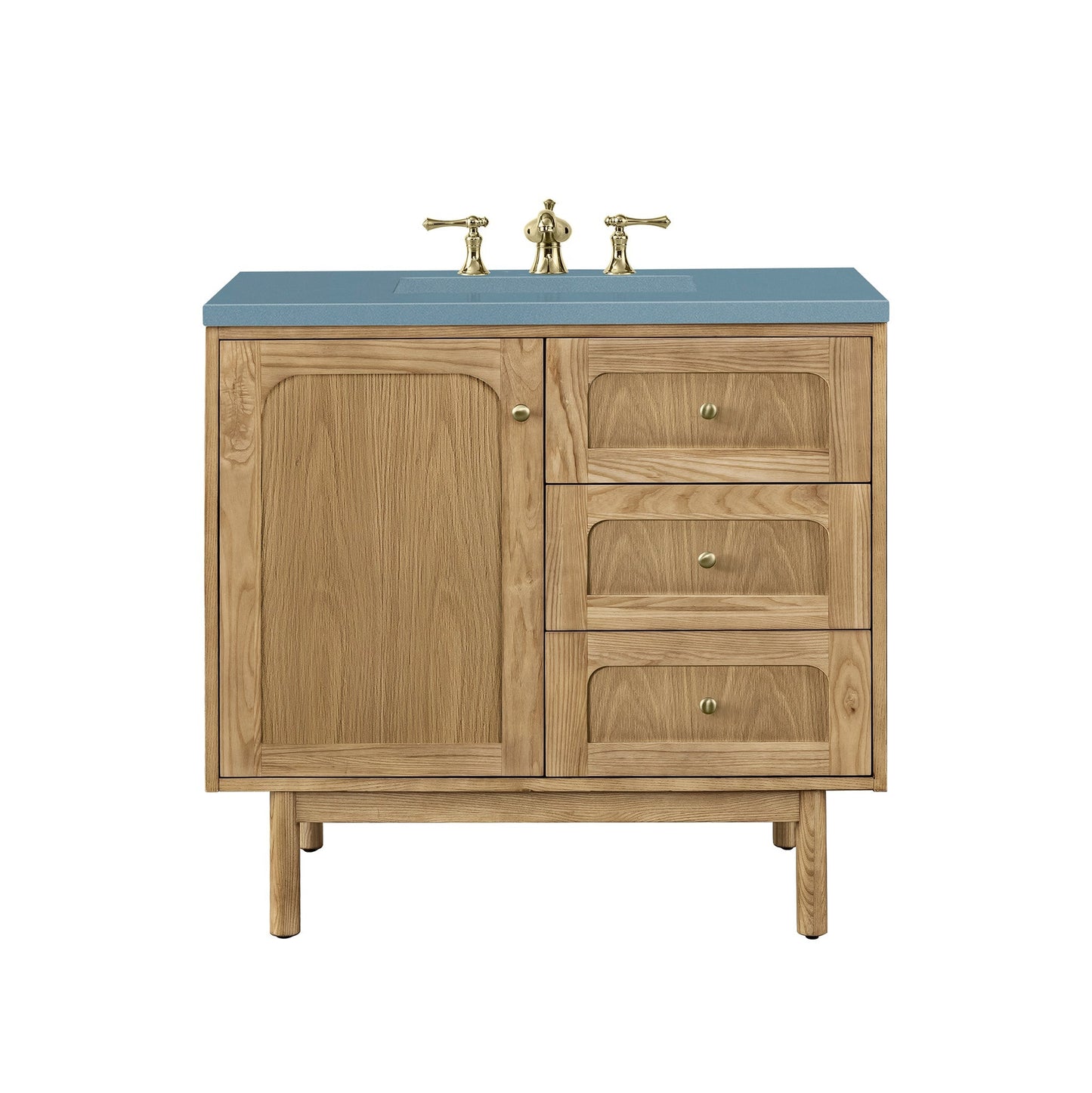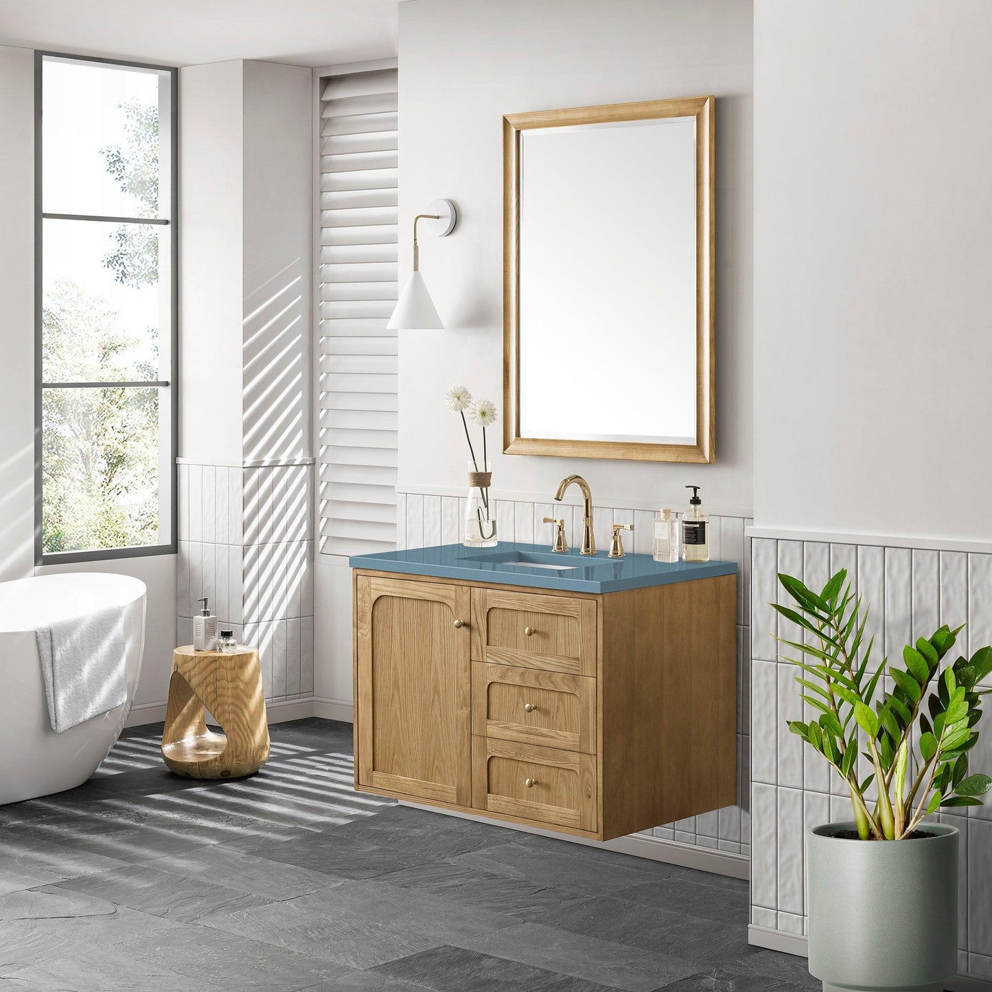 James Martin Vanities Laurent 36" Light Natural Oak Single Vanity With 3cm Cala Blue Top