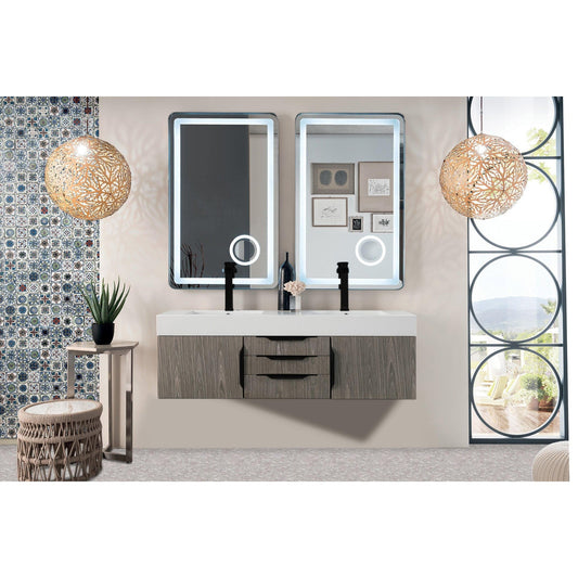 James Martin Vanities Mercer Island 59" Ash Gray, Matte Black Double Vanity With Glossy White Composite Top