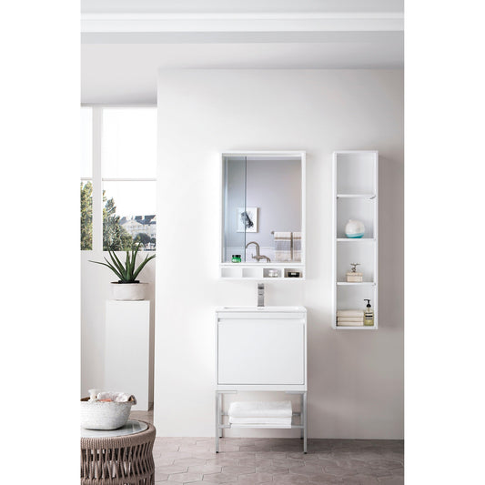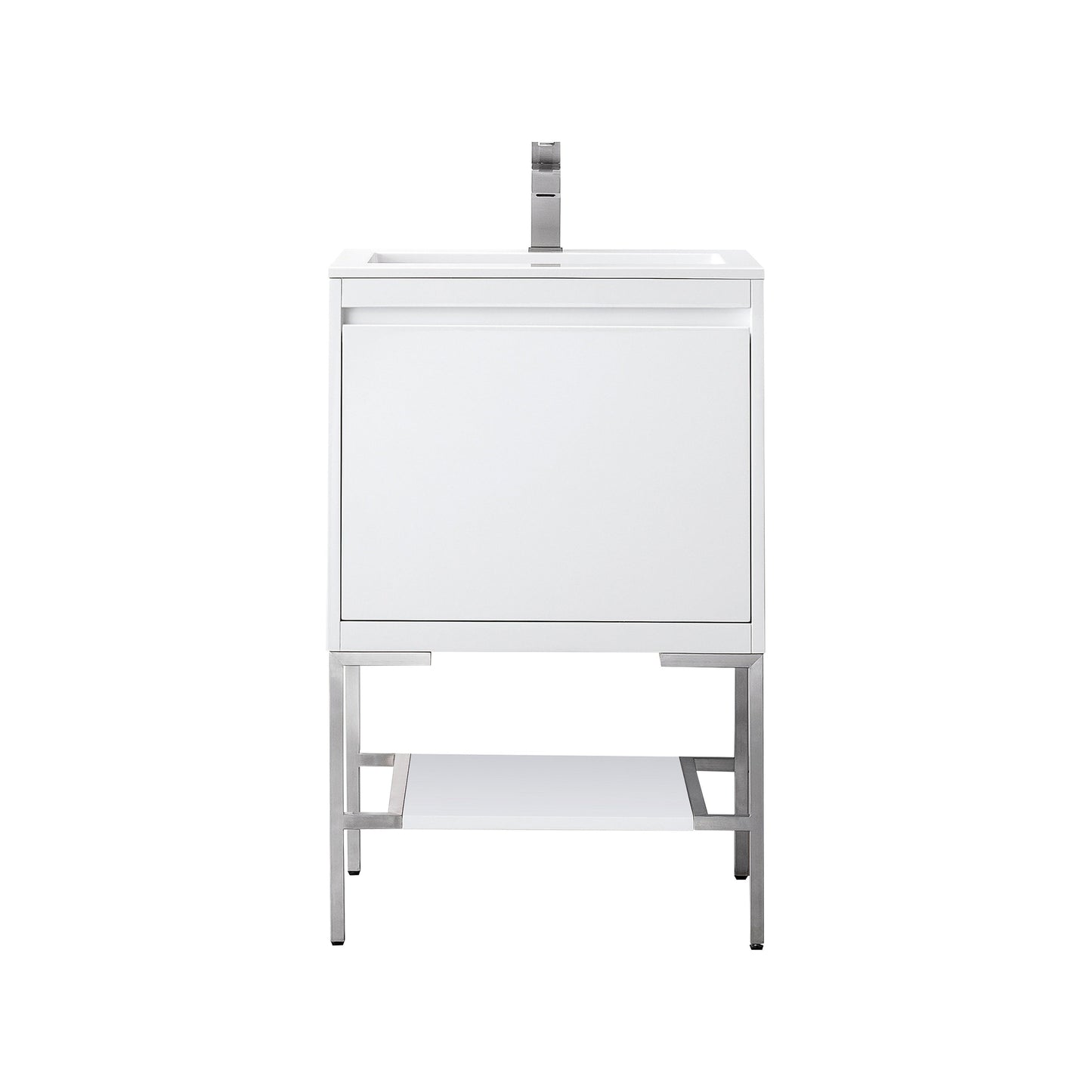 James Martin Vanities Milan 23.6" Glossy White, Brushed Nickel Single Vanity Cabinet With Glossy White Composite Top