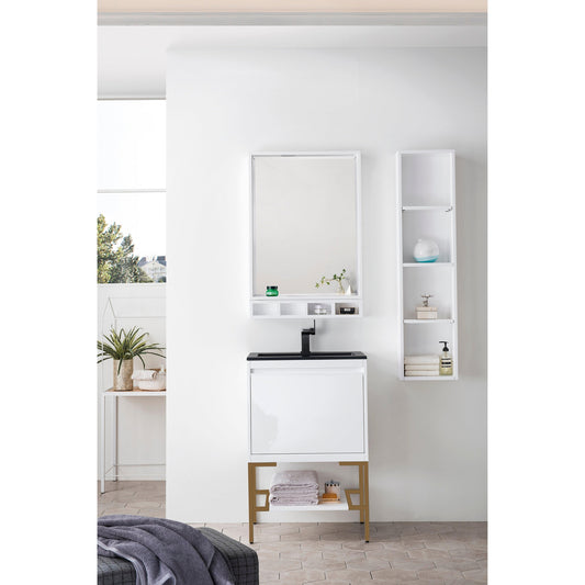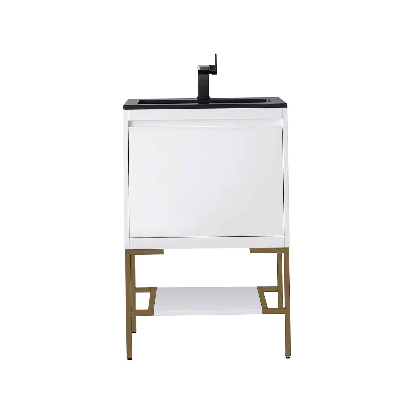 James Martin Vanities Milan 23.6" Glossy White, Radiant Gold Single Vanity Cabinet With Charcoal Black Composite Top