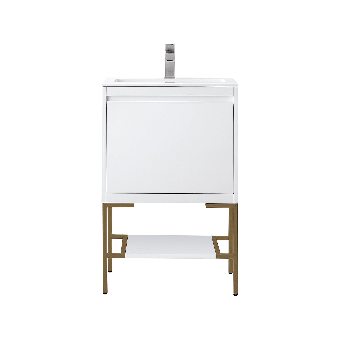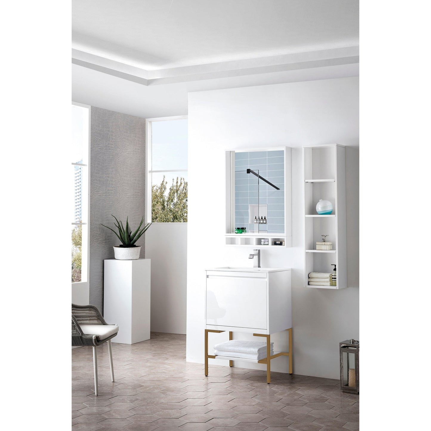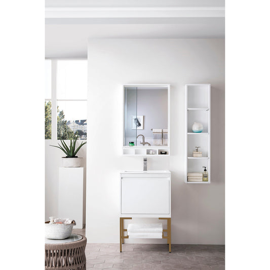 James Martin Vanities Milan 23.6" Glossy White, Radiant Gold Single Vanity Cabinet With Glossy White Composite Top