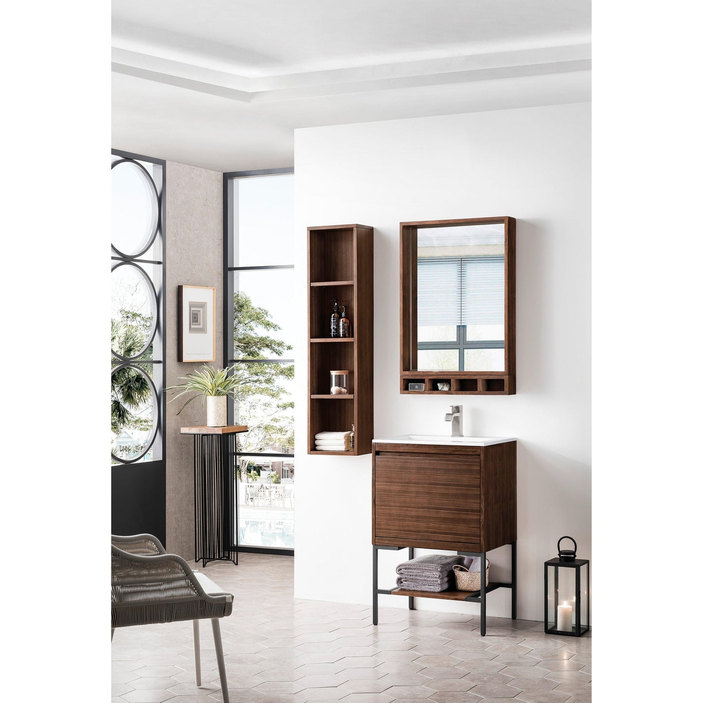 James Martin Vanities Milan 23.6" Mid Century Walnut, Matte Black Single Vanity Cabinet With Glossy White Composite Top