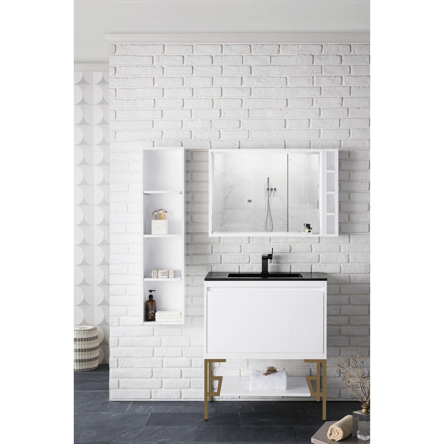 James Martin Vanities Milan 31.5" Glossy White, Matte Black Single Vanity Cabinet With Glossy White Composite Top