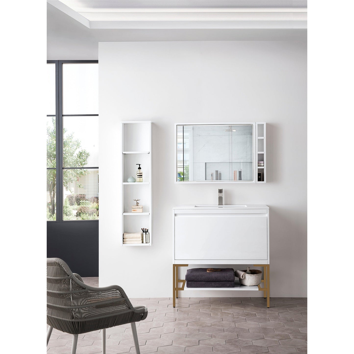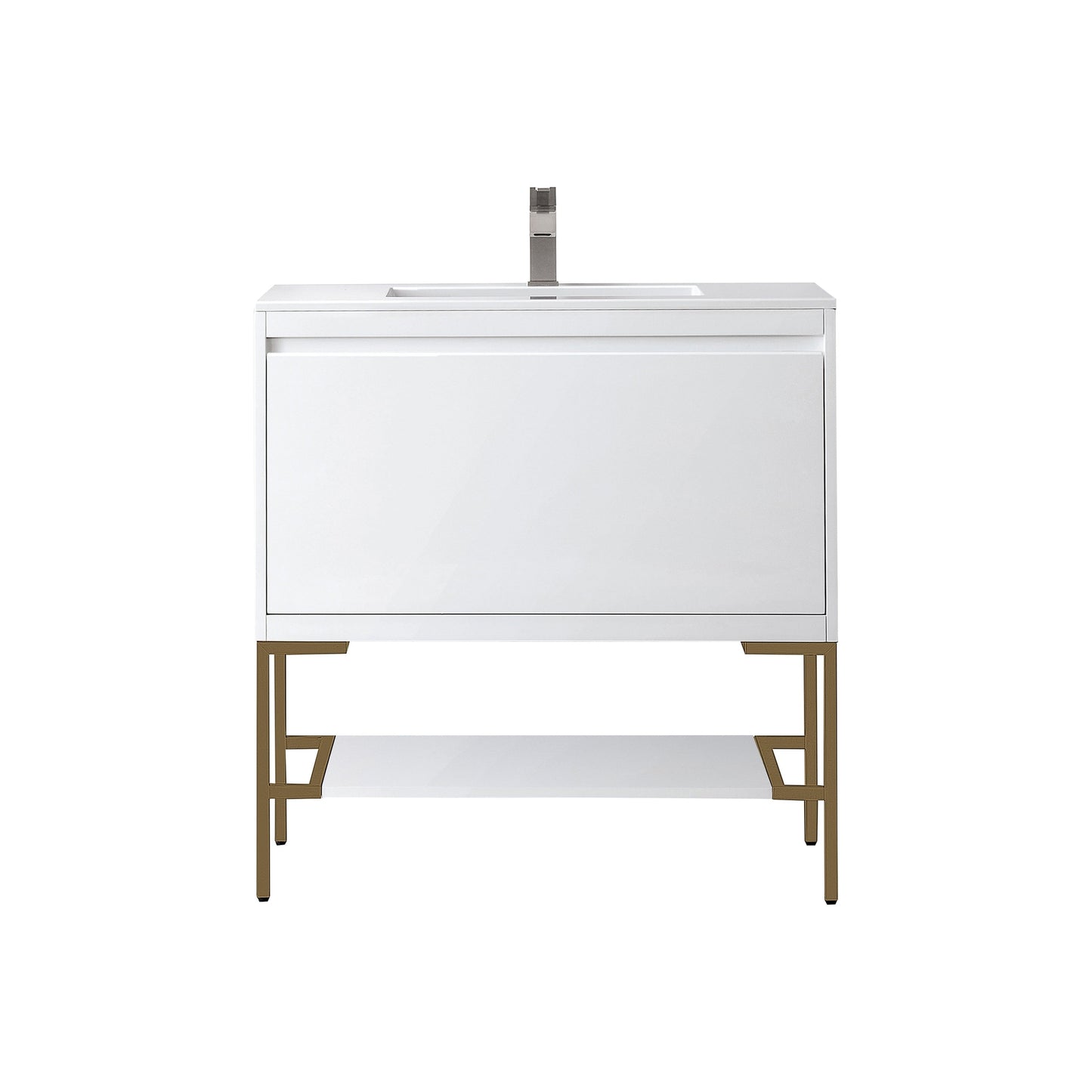 James Martin Vanities Milan 35.4" Glossy White, Radiant Gold Single Vanity Cabinet With Glossy White Composite Top