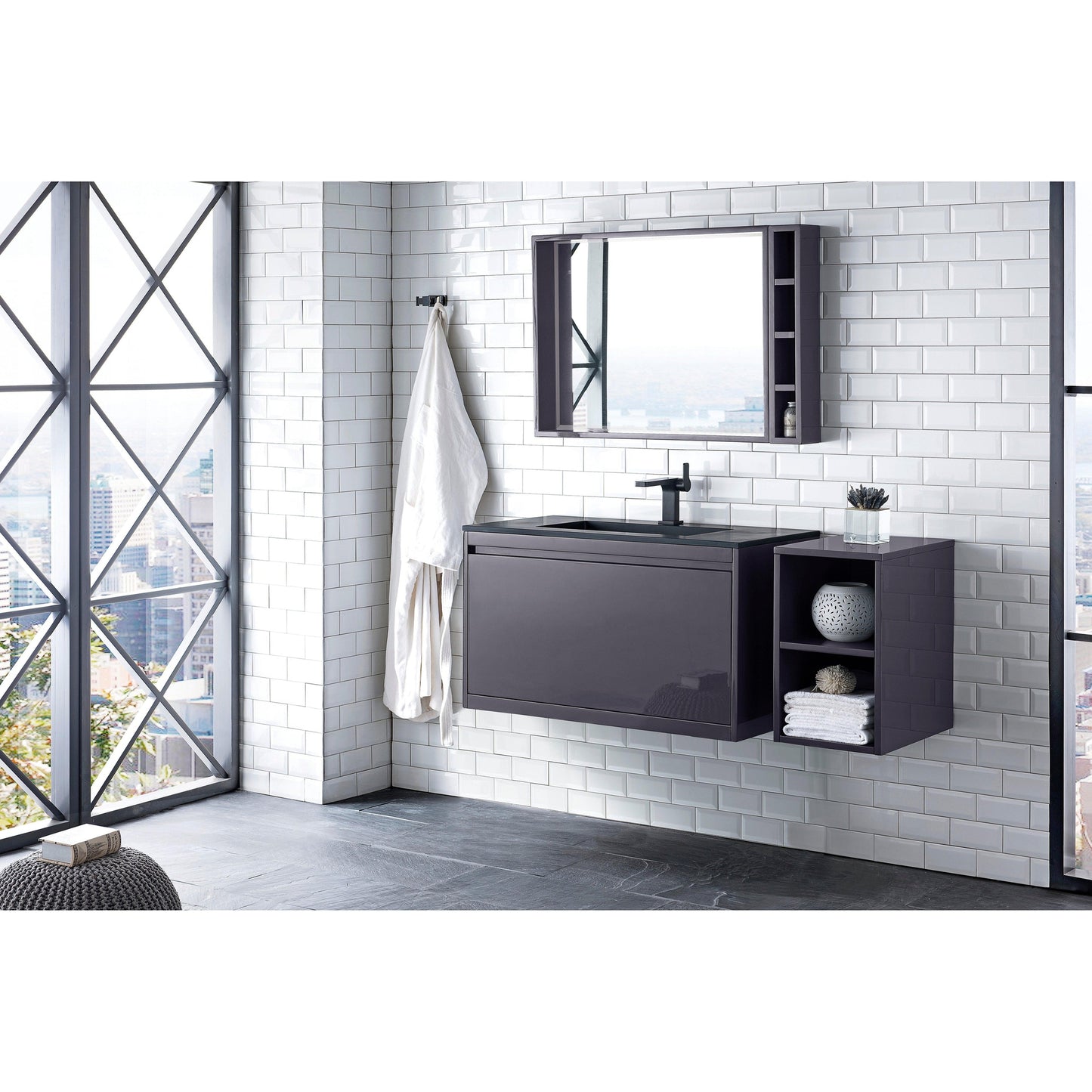 James Martin Vanities Milan 35.4" Modern Grey Glossy Single Vanity Cabinet With Charcoal Black Composite Top