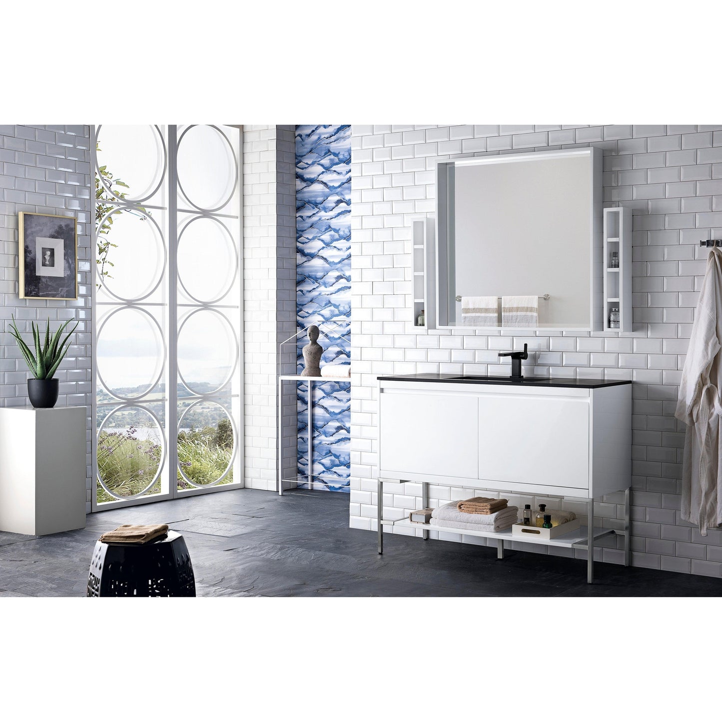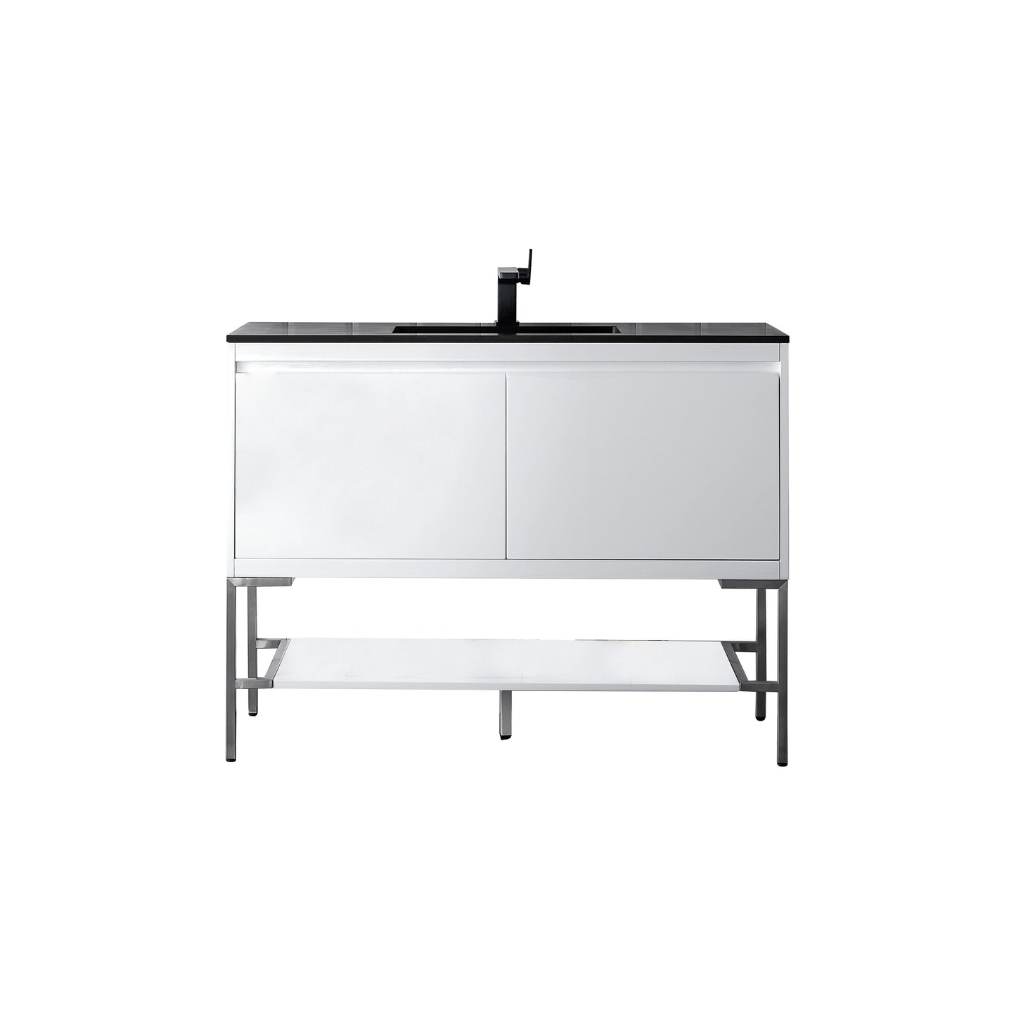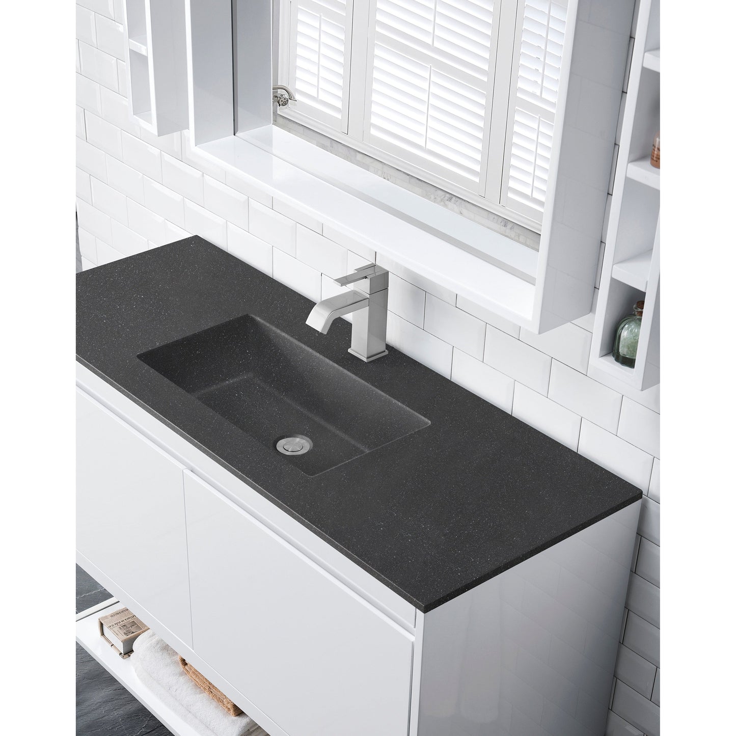 James Martin Vanities Milan 47.3" Glossy White, Brushed Nickel Single Vanity Cabinet With Charcoal Black Composite Top