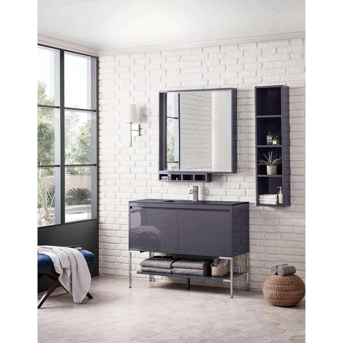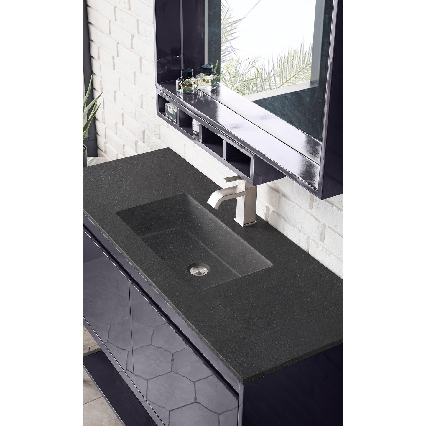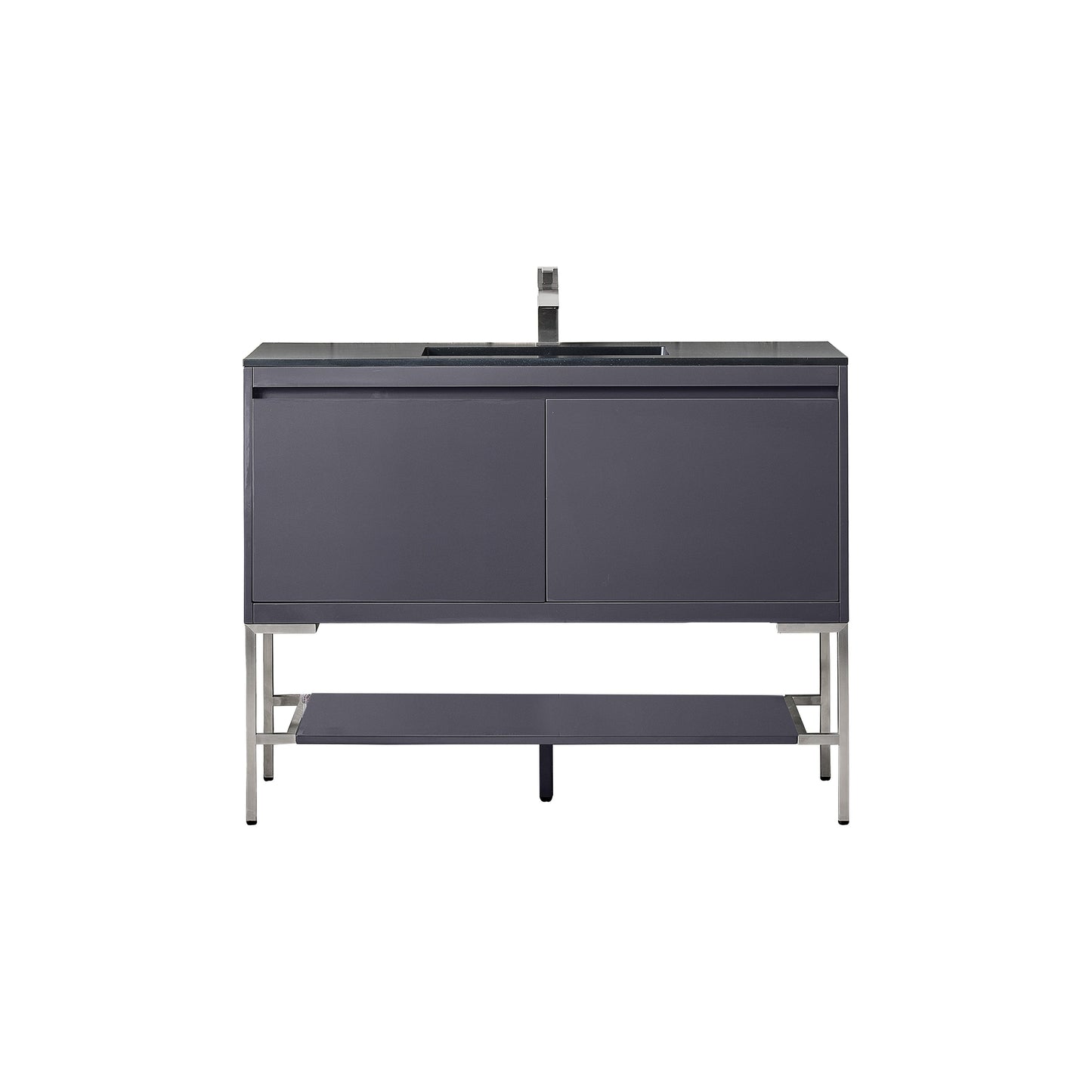 James Martin Vanities Milan 47.3" Modern Grey Glossy, Brushed Nickel Single Vanity Cabinet With Charcoal Black Composite Top