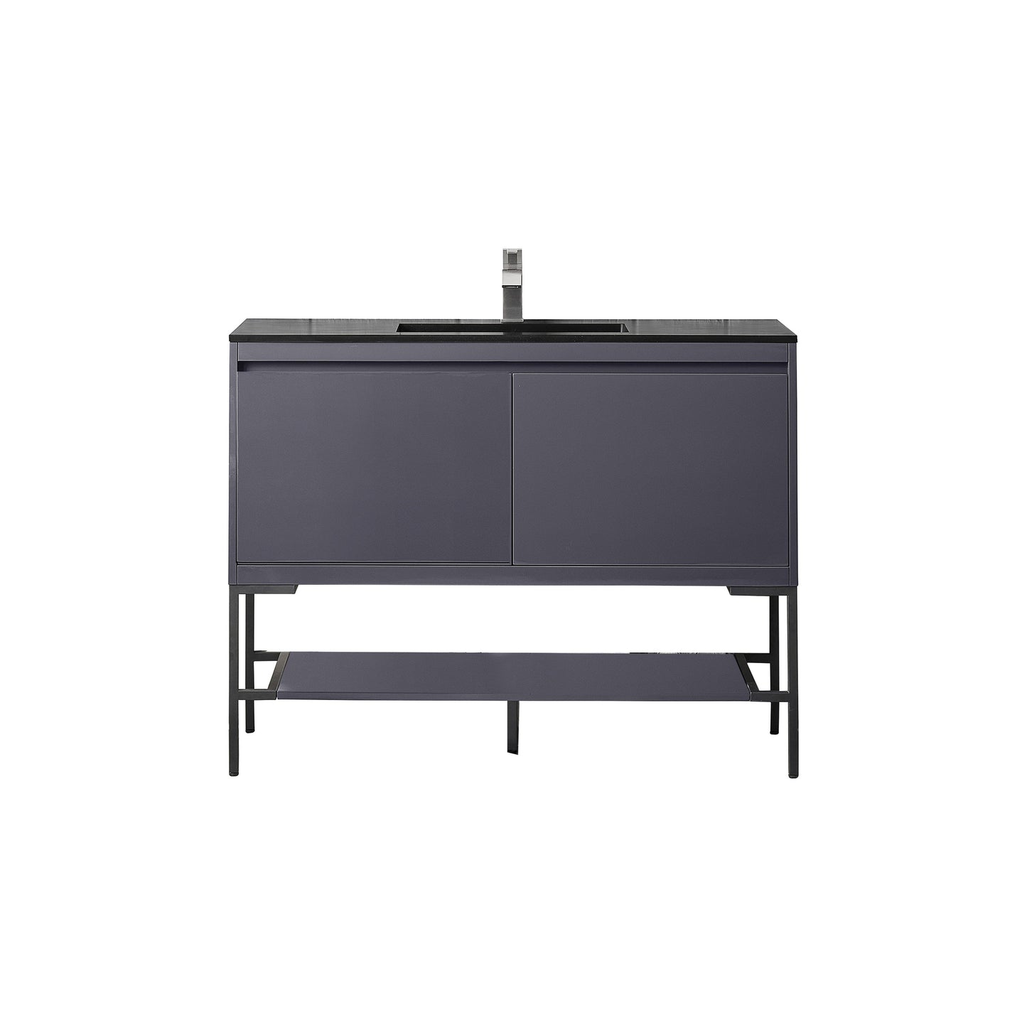 James Martin Vanities Milan 47.3" Modern Grey Glossy, Matte Black Single Vanity Cabinet With Charcoal Black Composite Top