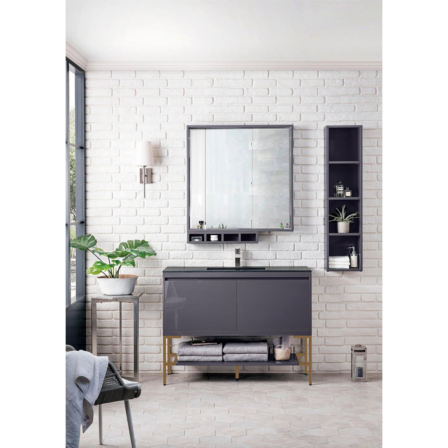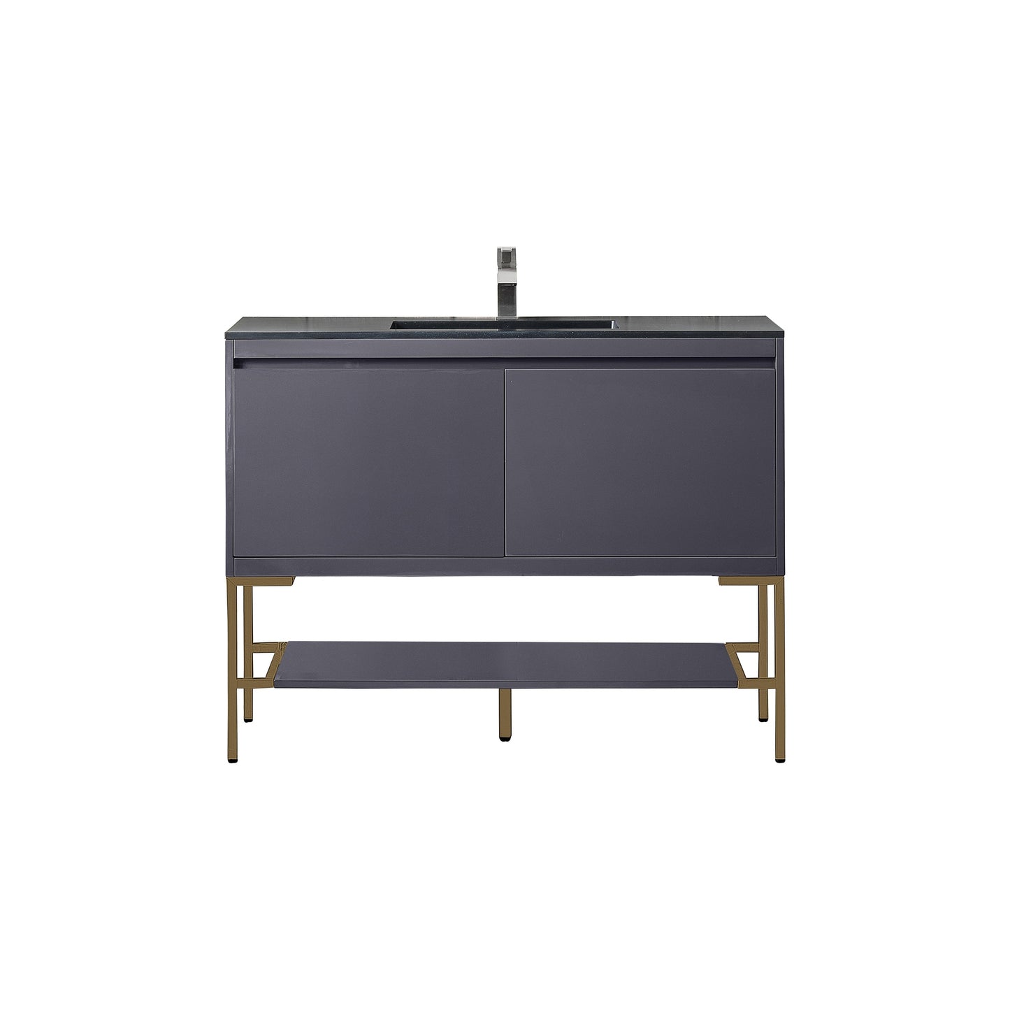 James Martin Vanities Milan 47.3" Modern Grey Glossy, Radiant Gold Single Vanity Cabinet With Charcoal Black Composite Top