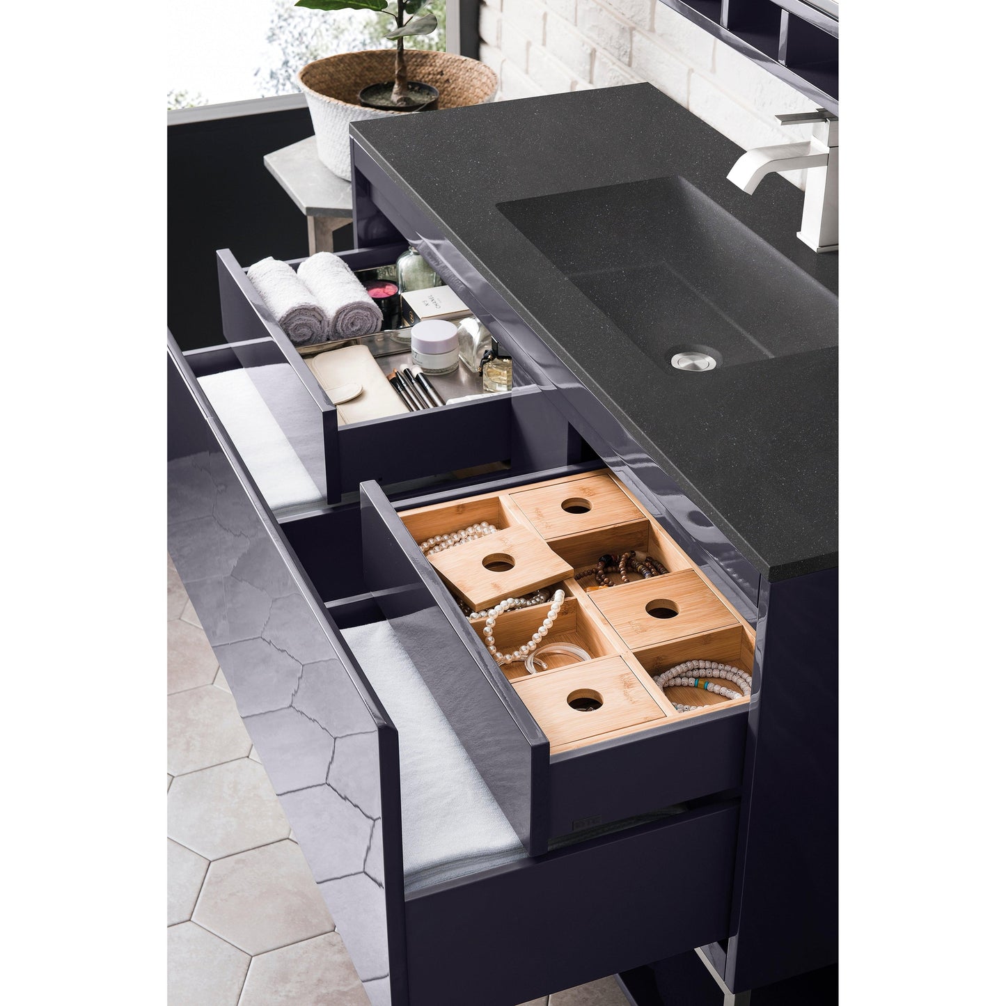 James Martin Vanities Milan 47.3" Modern Grey Glossy Single Vanity Cabinet With Charcoal Black Composite Top