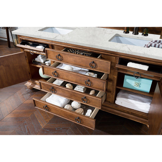 James Martin Vanities Mykonos 72" Cinnamon Double Vanity Cabinet With 3cm Eternal Jasmine Pearl Quartz Top