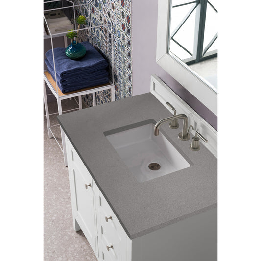 James Martin Vanities Palisades 36" Bright White Single Vanity With 3cm Grey Expo Quartz Top