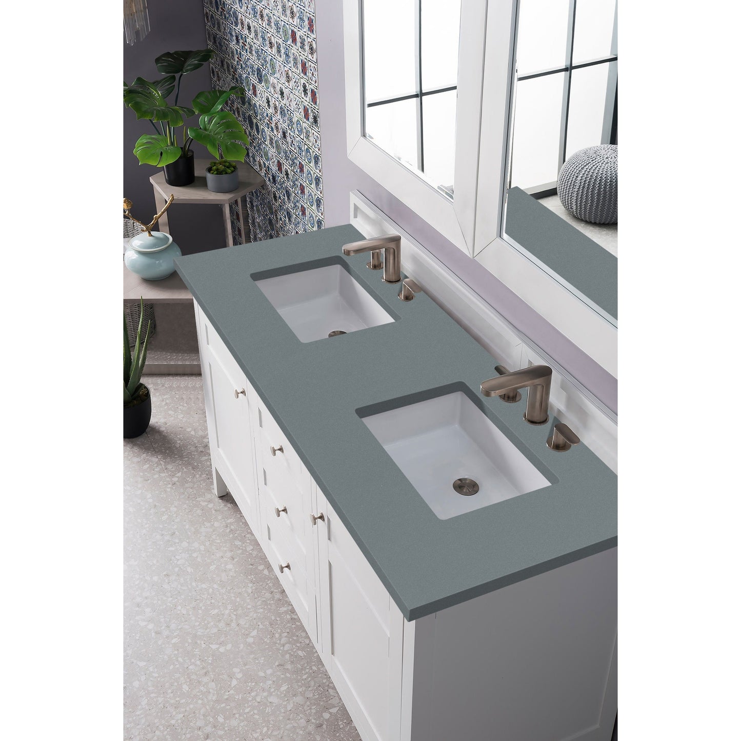James Martin Vanities Palisades 60" Bright White Double Vanity With 3cm Cala Blue Quartz Top