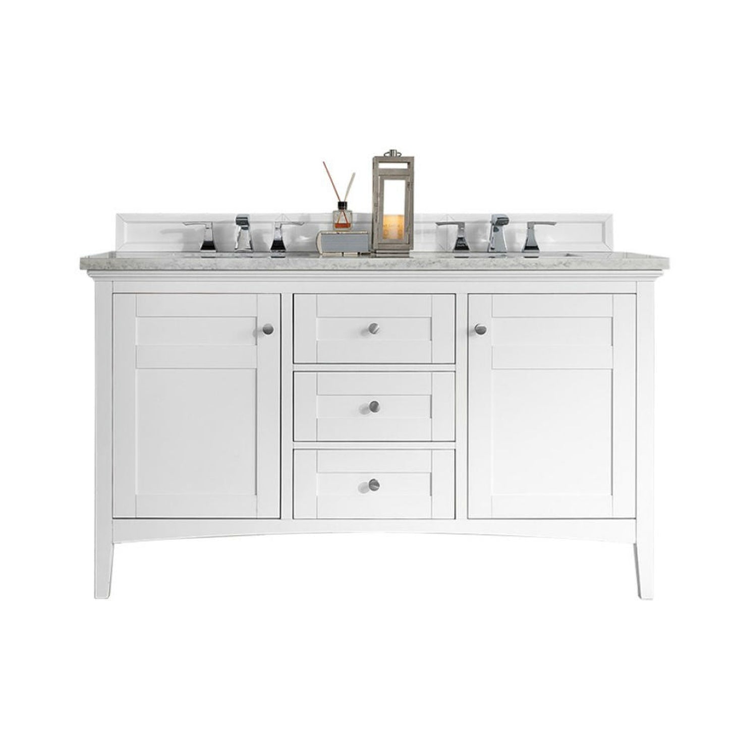 James Martin Vanities Palisades 60" Bright White Double Vanity With 3cm Carrara Marble Top