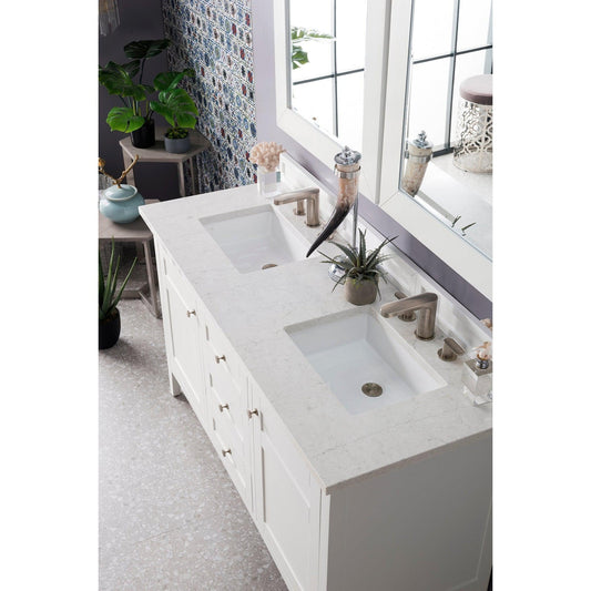James Martin Vanities Palisades 60" Bright White Double Vanity With 3cm Eternal Jasmine Pearl Quartz Top
