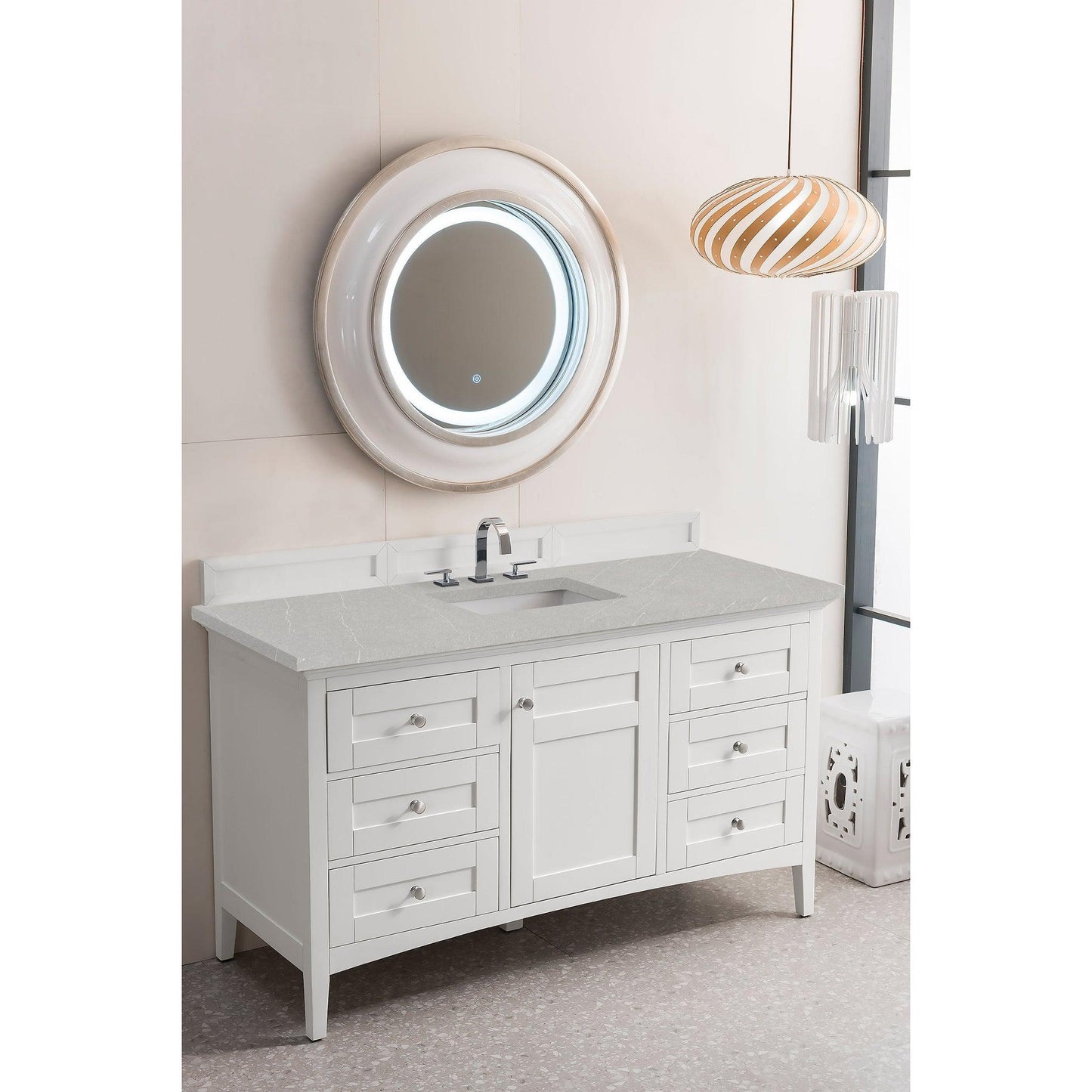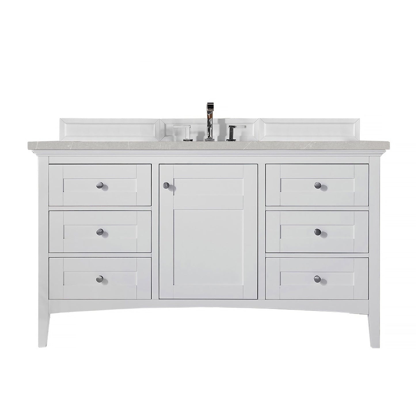 James Martin Vanities Palisades 60" Bright White Single Vanity With 3cm Eternal Serena Quartz Top