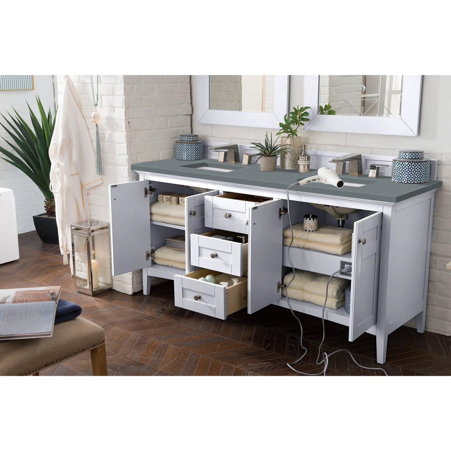 James Martin Vanities Palisades 72" Bright White Double Vanity With 3cm Cala Blue Quartz Top