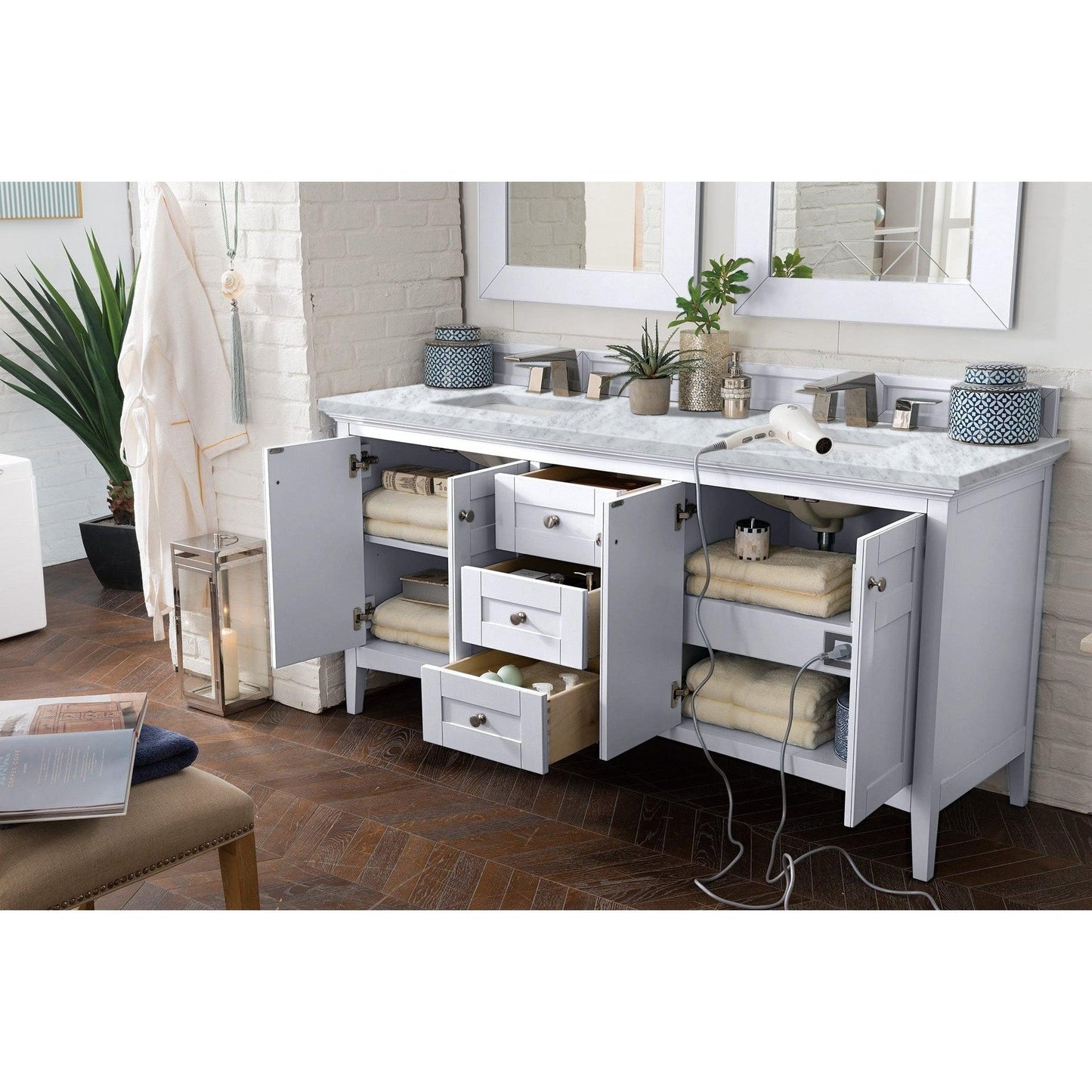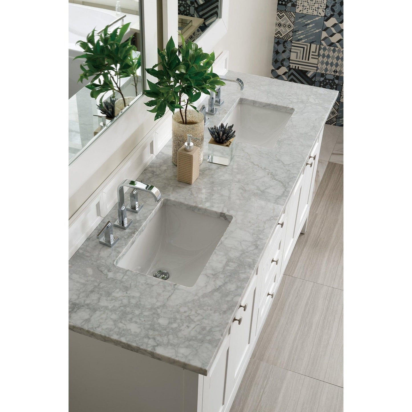 James Martin Vanities Palisades 72" Bright White Double Vanity With 3cm Carrara Marble Top