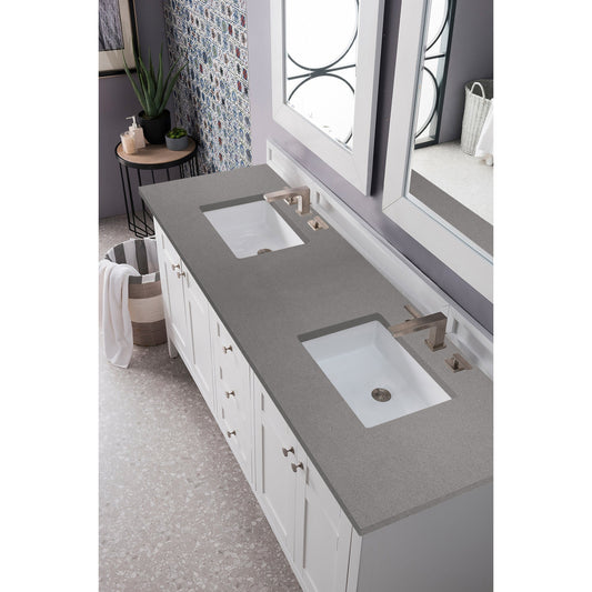 James Martin Vanities Palisades 72" Bright White Double Vanity With 3cm Grey Expo Quartz Top