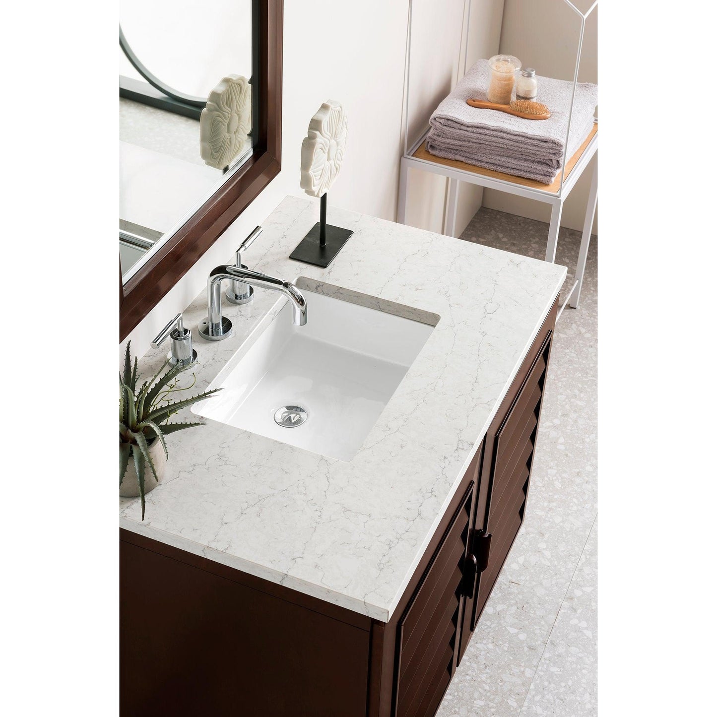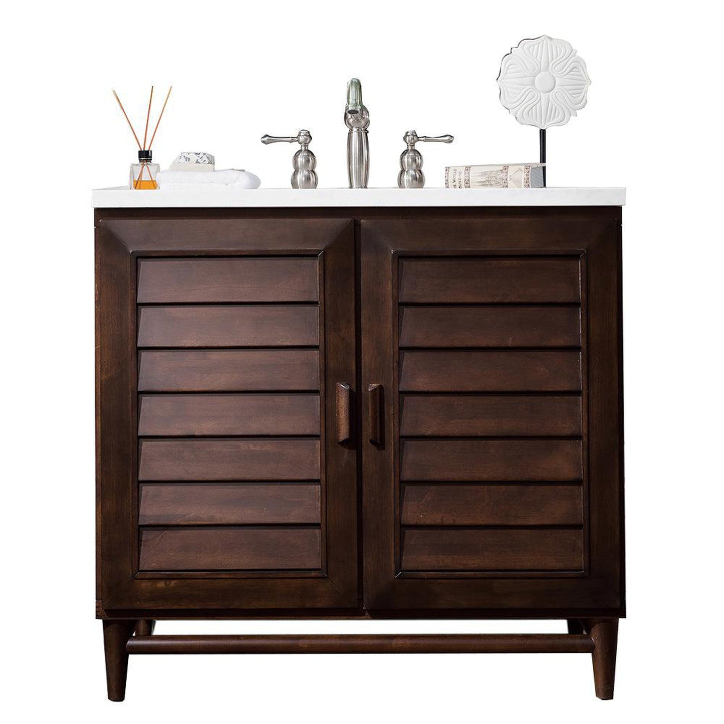 James Martin Vanities Portland 36" Burnished Mahogany Single Vanity With 3cm Eternal Jasmine Pearl Quartz Top
