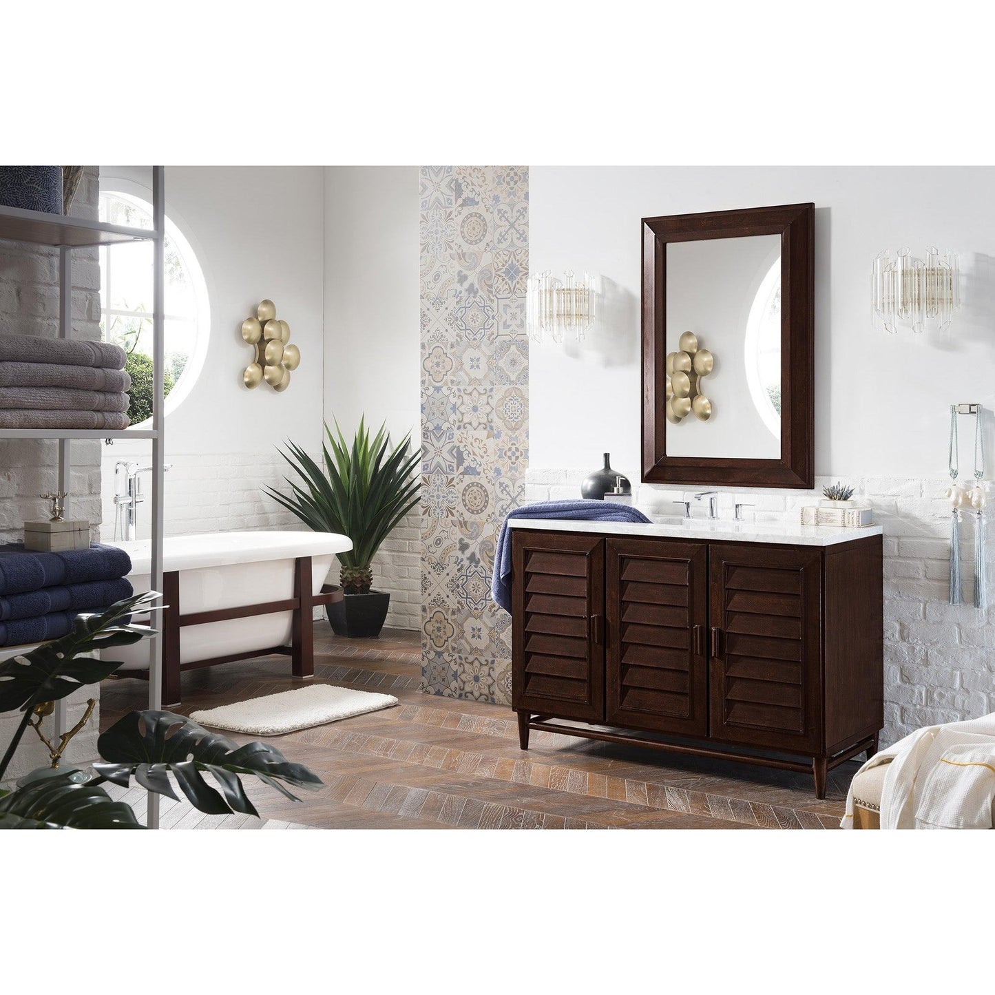 James Martin Vanities Portland 48" Burnished Mahogany Single Vanity With 3cm Carrara Marble Top