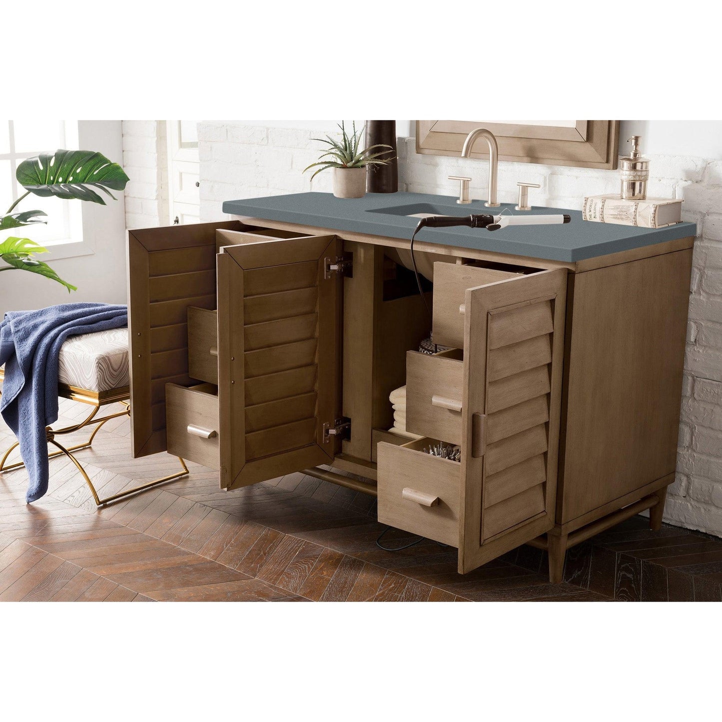 James Martin Vanities Portland 48" Whitewashed Walnut Single Vanity With 3cm Cala Blue Quartz Top