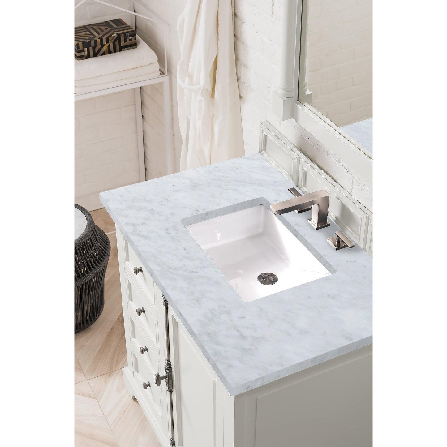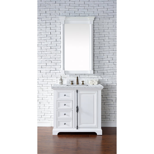 James Martin Vanities Providence 36" Bright White Single Vanity With 3cm Carrara Marble Top