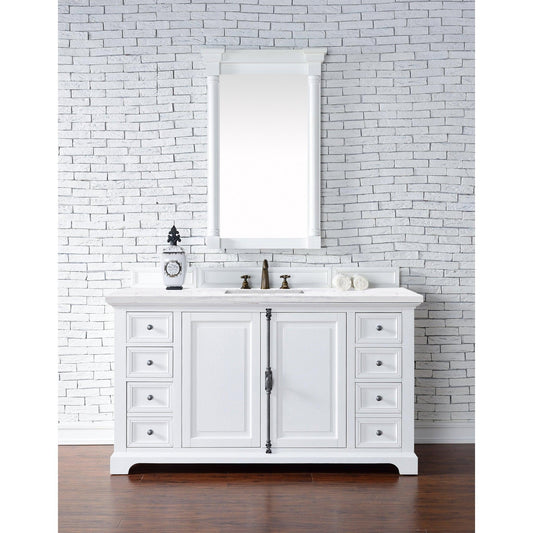 James Martin Vanities Providence 60" Bright White Single Vanity With 3cm Arctic Fall Solid Surface Top