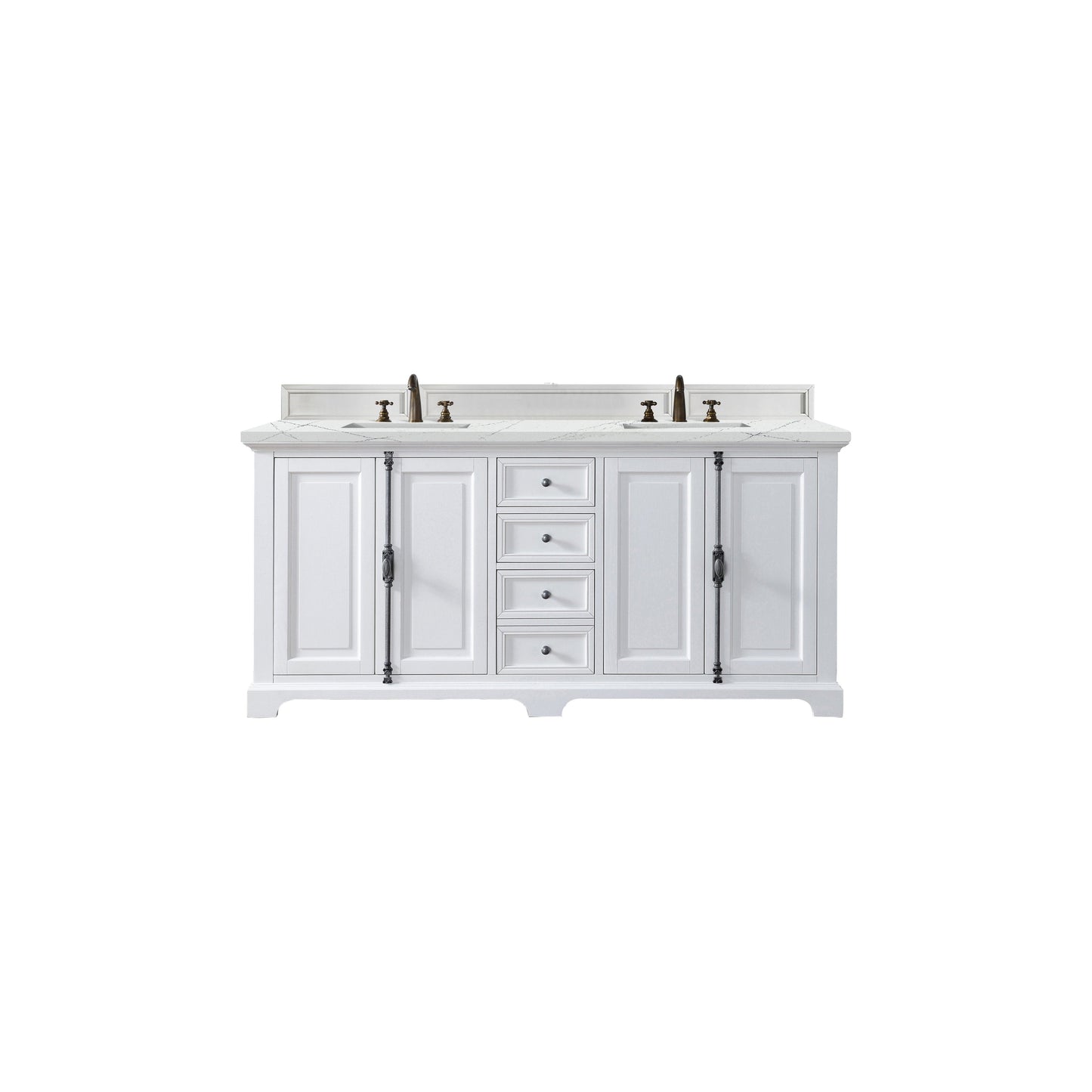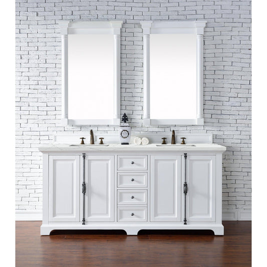James Martin Vanities Providence 72" Bright White Double Vanity Cabinet With 3cm Ethereal Noctis Quartz Top