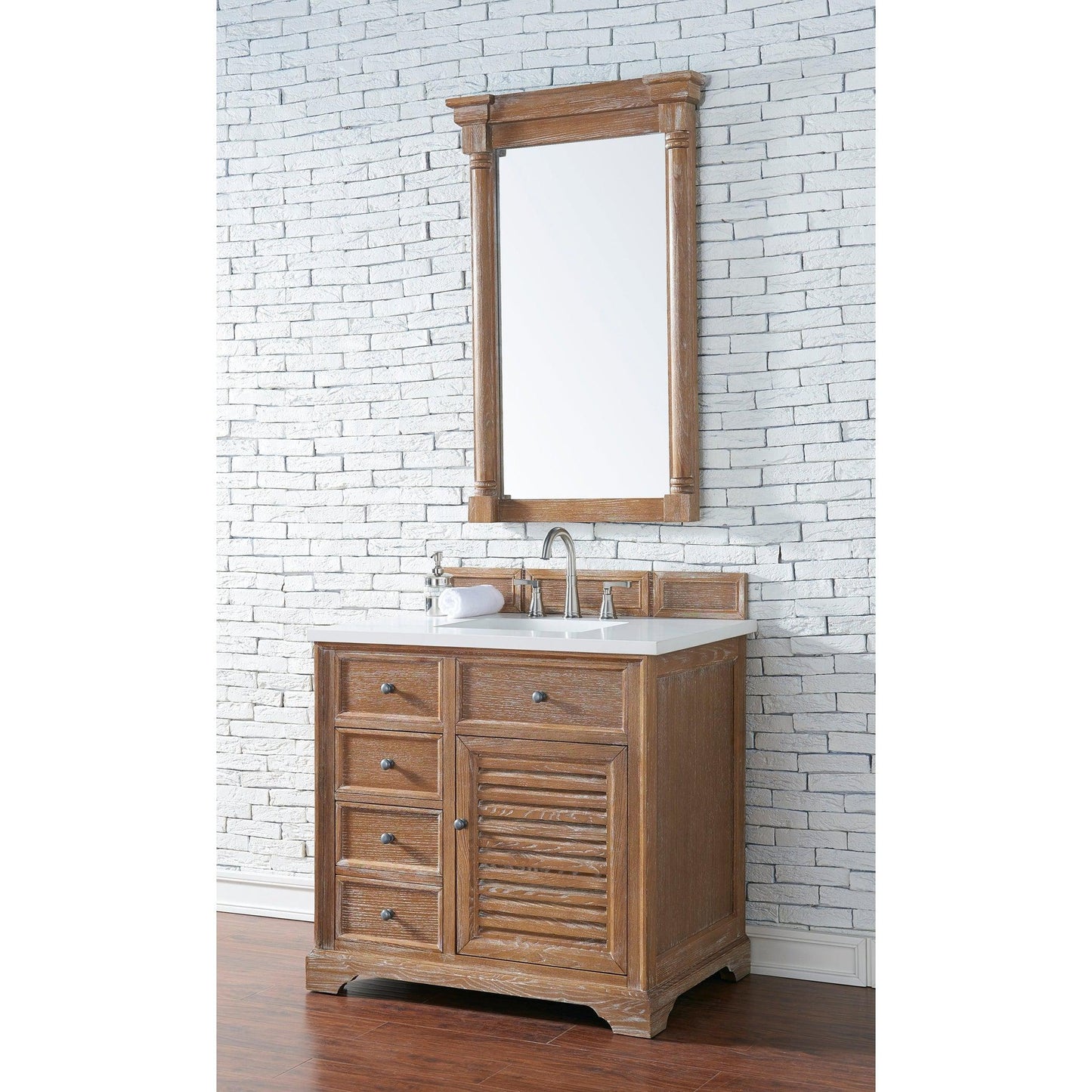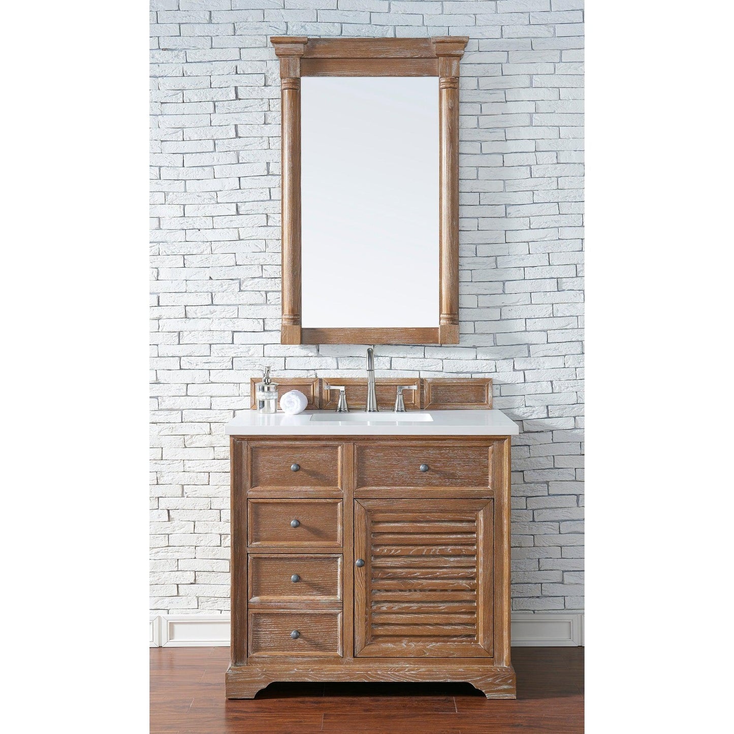 James Martin Vanities Savannah 36" Driftwood Single Vanity Cabinet With 3cm White Zeus Quartz Top