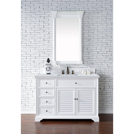 James Martin Vanities Savannah 48" Bright White Single Vanity With 3cm Carrara Marble Top