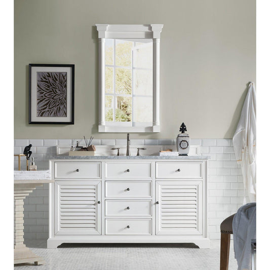 James Martin Vanities Savannah 60" Bright White Single Vanity With 3cm Carrara Marble Top