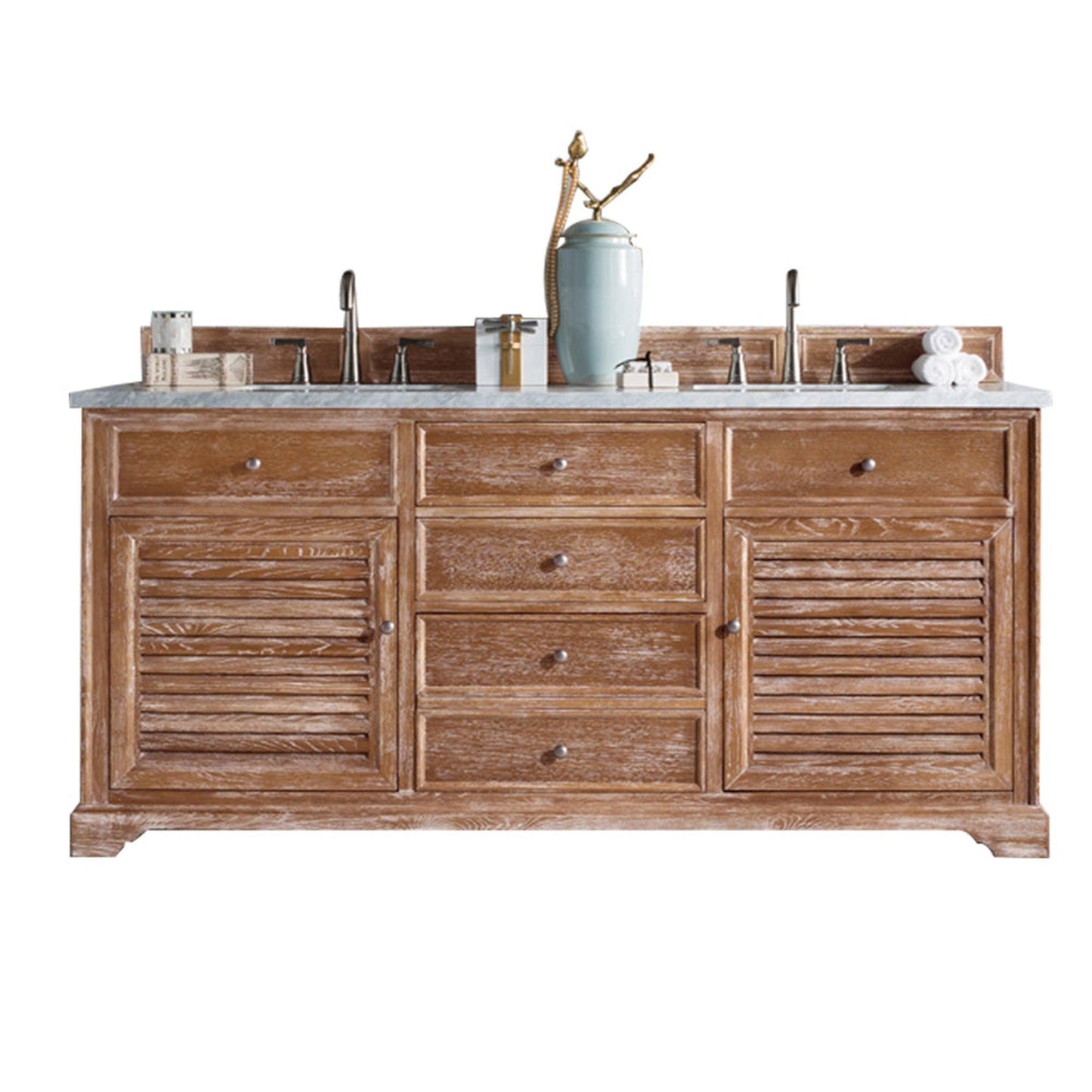 James Martin Vanities Savannah 72" Driftwood Double Vanity With 3cm Carrara Marble Top