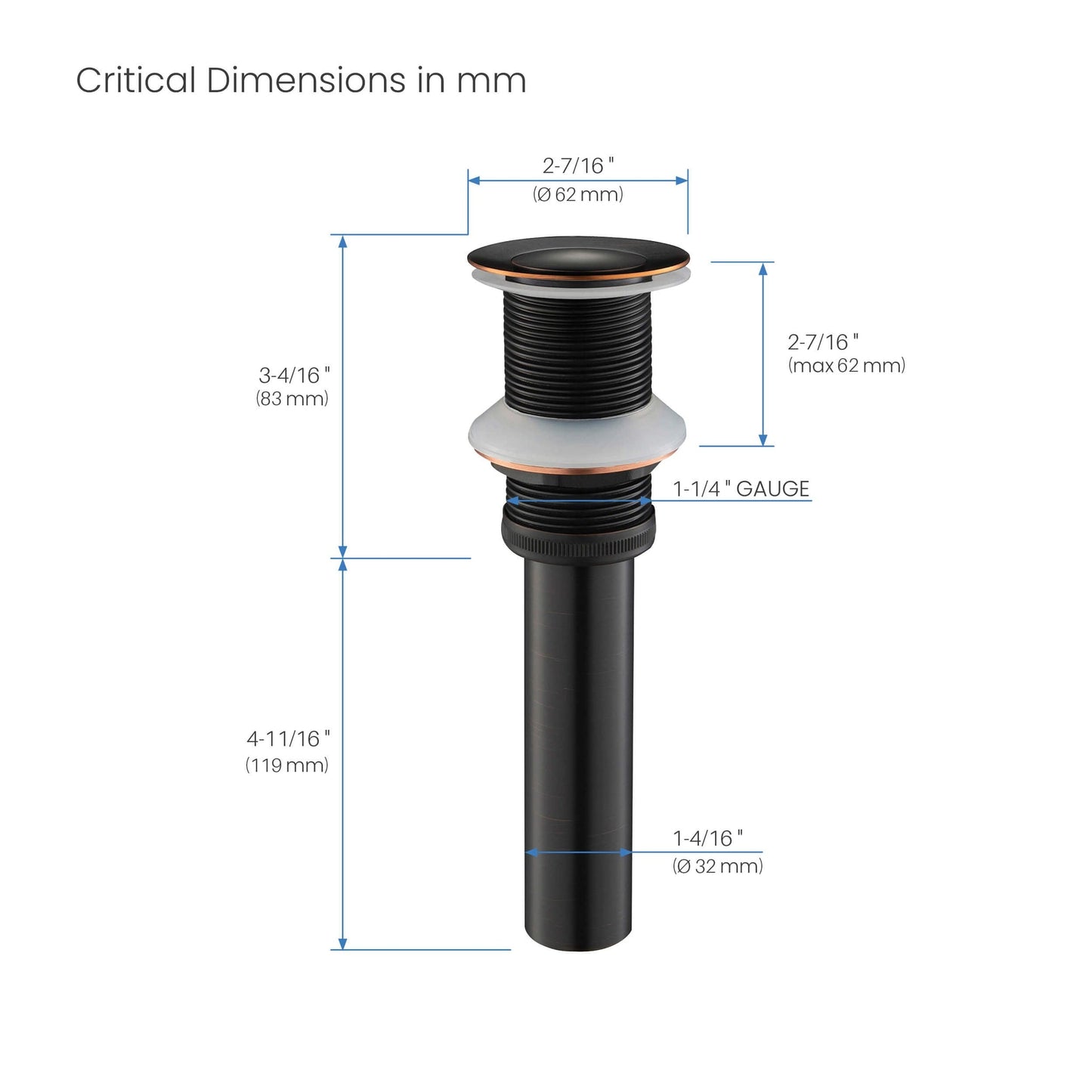 Complete your faucet installation with the Kibi Vessel Pop Up Bathroom Sink Drain without Overflow. This pop-up drain features a brass tailpiece and a 1-1/4" connection.