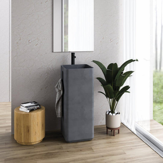 Konkretus Fladd06 15" Volcanic Gray Square Pedestal Concrete Bathroom Sink