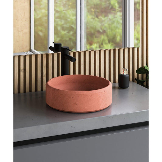 Konkretus Ubud01 15" Antilles Orange Top Mount Round Vessel Concrete Bathroom Sink