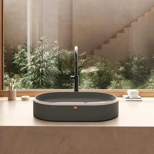 Konkretus Ubud02 22" Volcanic Gray Top Mount Oval Vessel Concrete Bathroom Sink