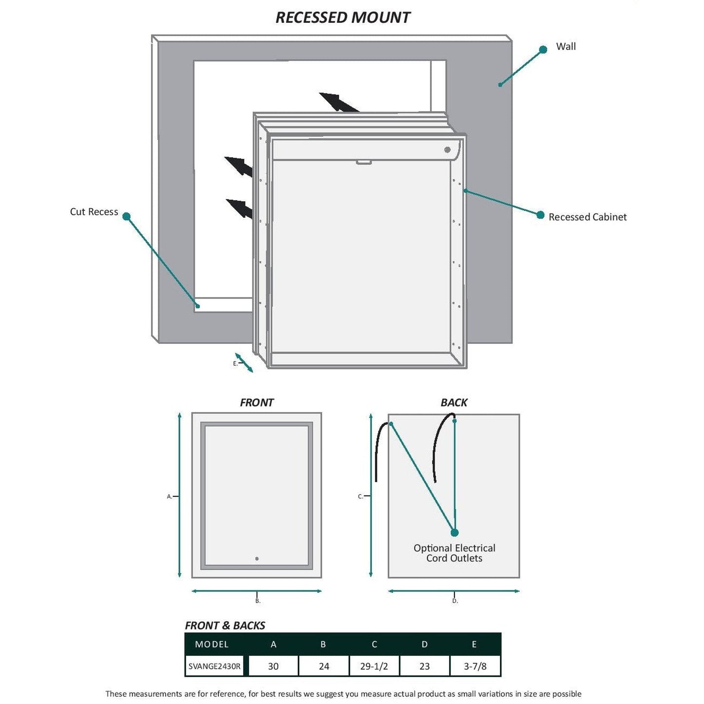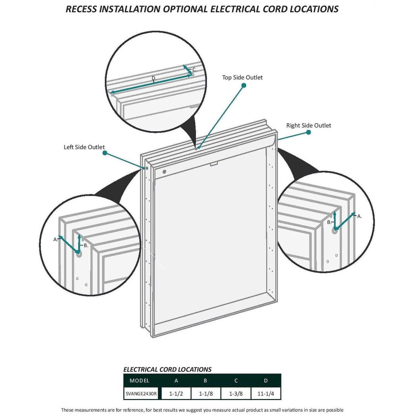 Recess Installation Optional Electrical Cord Locations