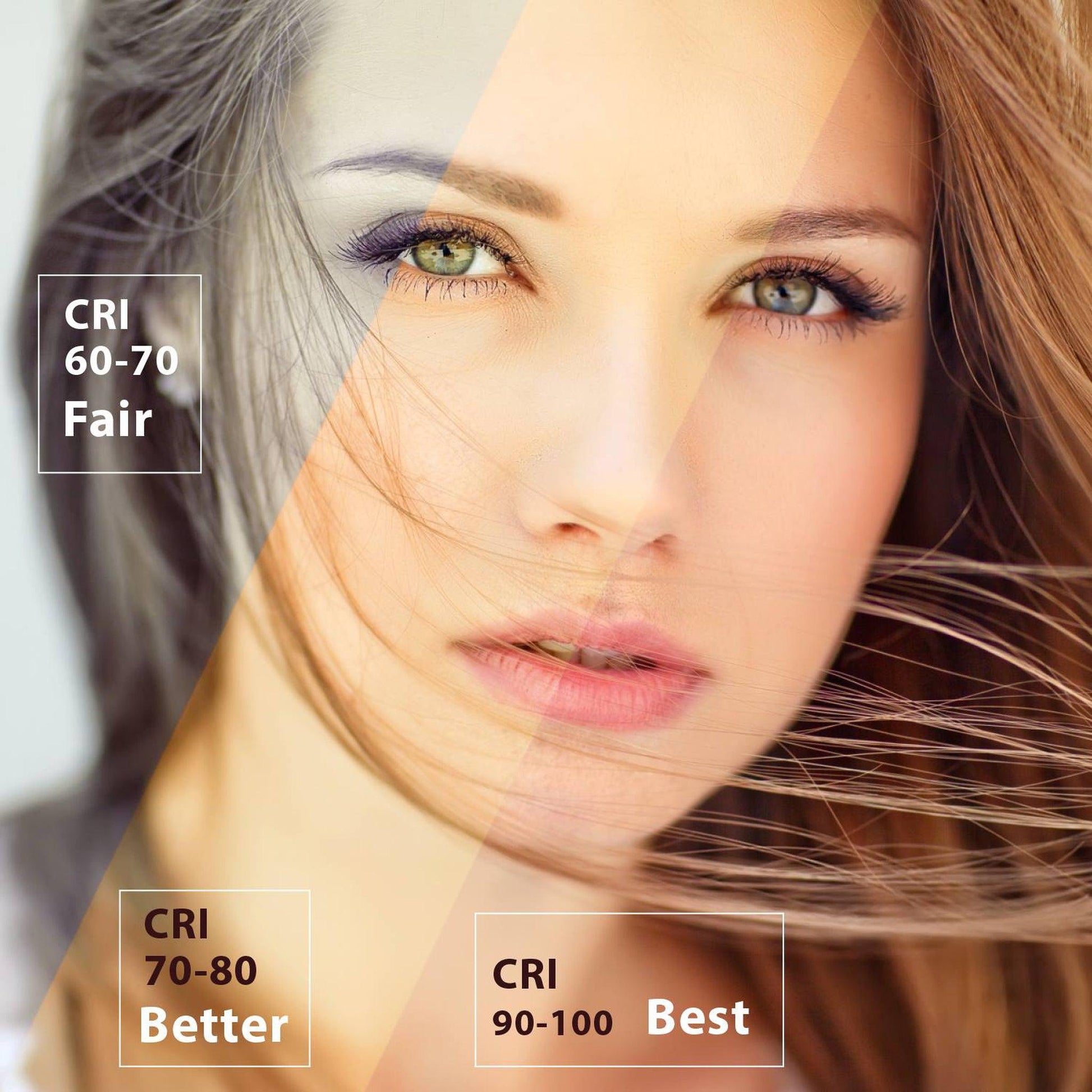 Color rendering index (CRI) is a measure of how accurately a light source displays colors. The higher the CRl, the better the artificial light source is at rendering colors accurately. The lower the CRI value, the more unnatural colors appear when illuminated by the light source. The CRI runs on a scale of 0-100, and the higher the index number, the better the light source is at rendering color. Light sources with a CRI of 85-90 are good, while 90 is excellent. CRI is dependent on color temperature as the hue of the light cast can affect the perception of the object's color.