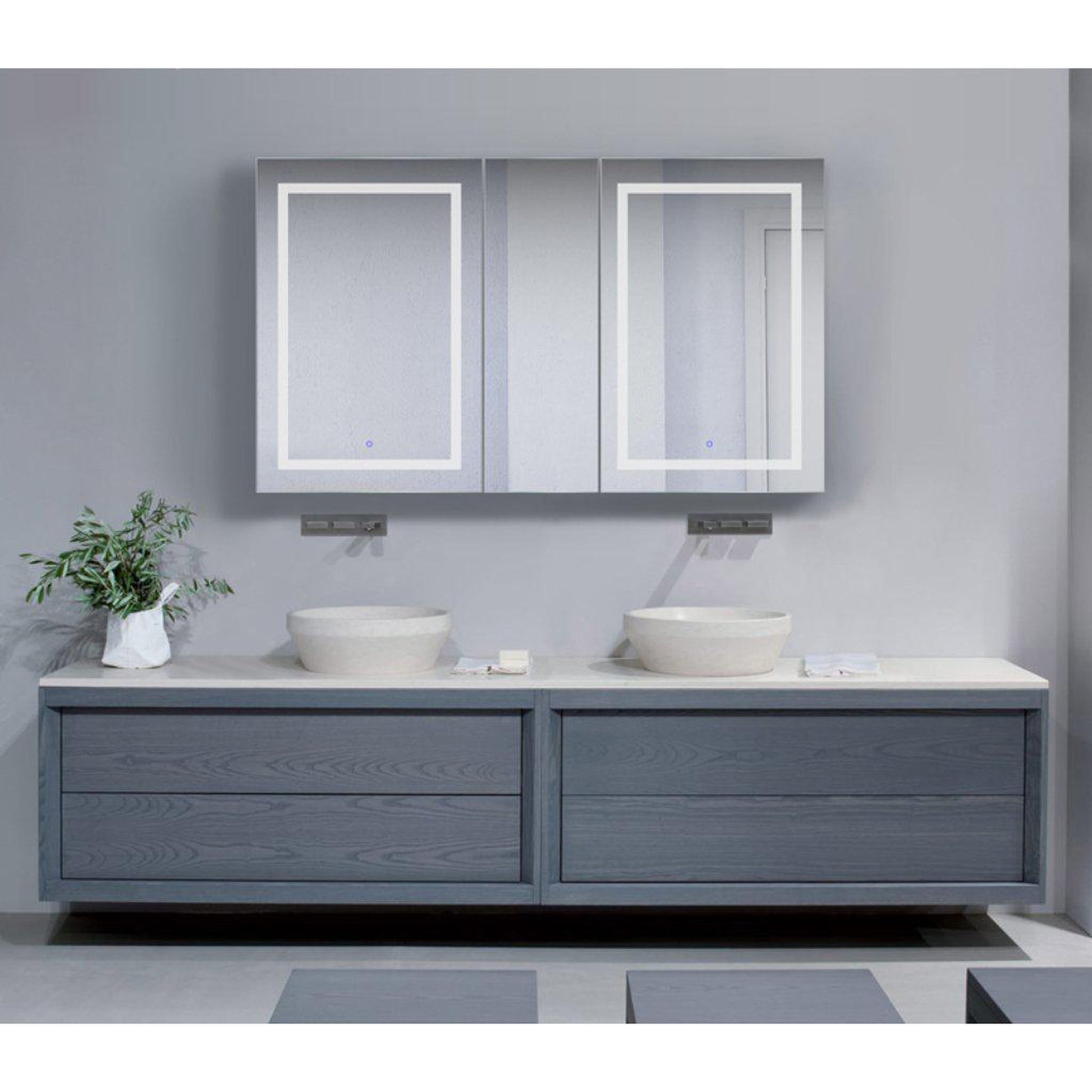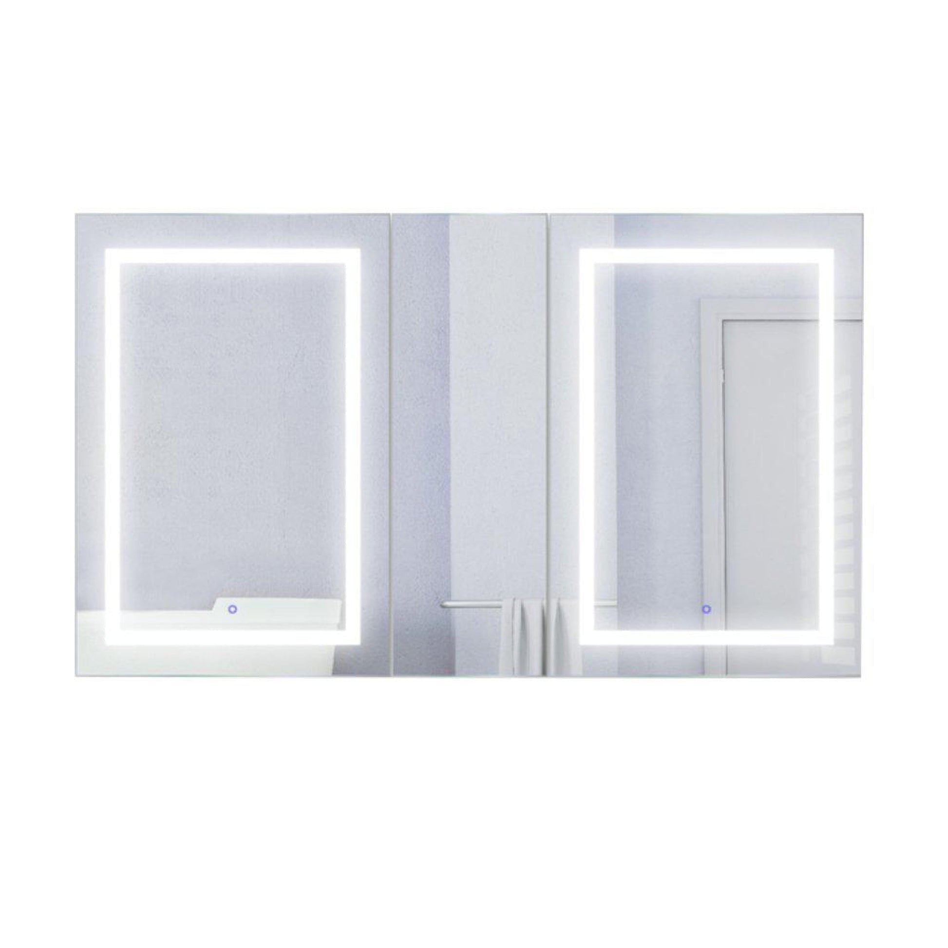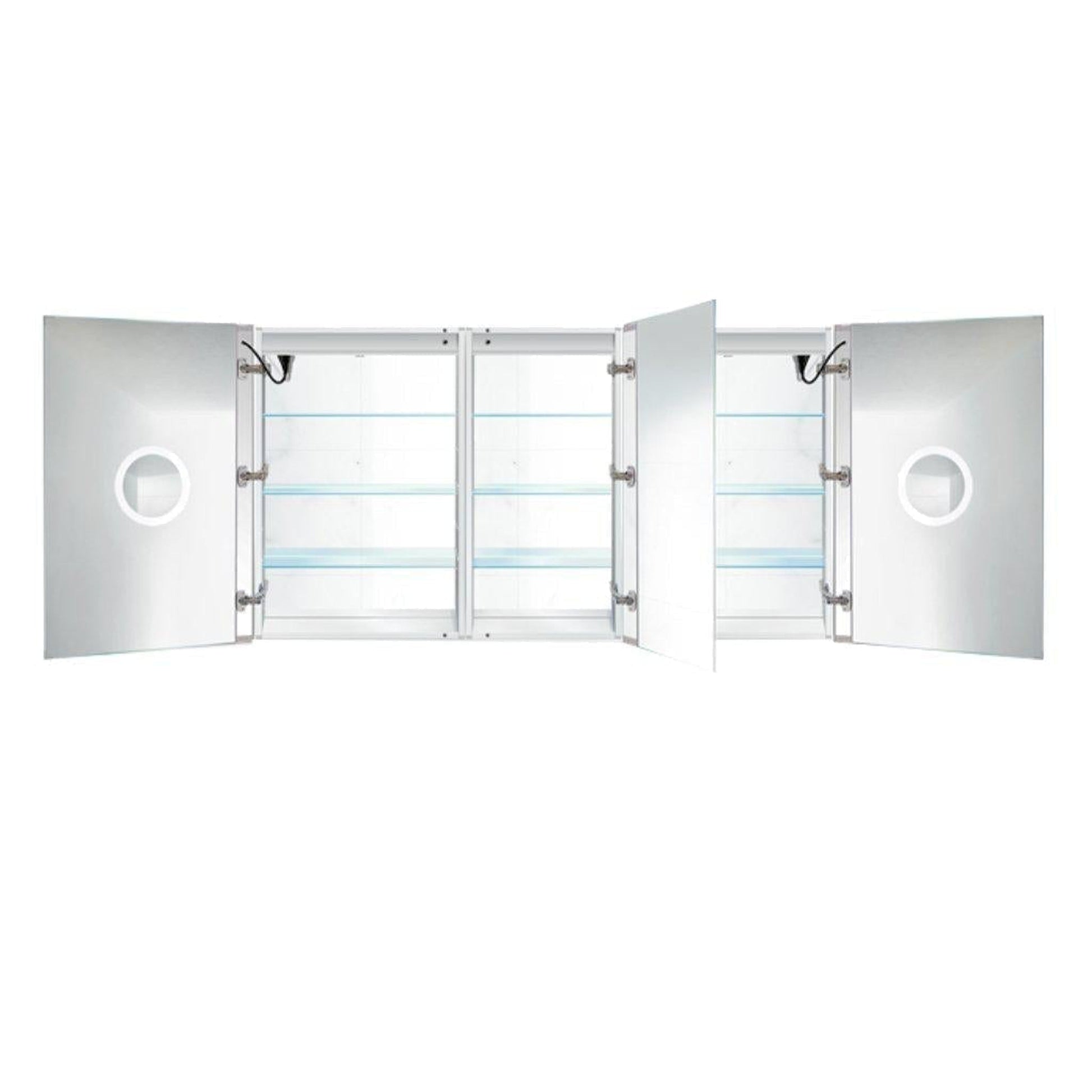 Krugg Reflections Svange 60" x 36" 5000K Double Left-Right-Right Opening Recessed/Surface-Mount Illuminated Silver Backed LED Medicine Cabinet Mirror With Built-in Defogger, Dimmer and Electrical Outlet