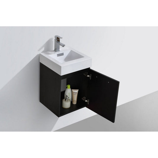 KubeBath Bliss 16" Black Wall-Mounted Modern Bathroom Vanity With Single Integrated Acrylic Sink and Overflow
