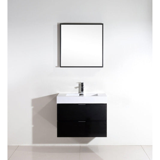 KubeBath Bliss 30" Black Wall-Mounted Modern Bathroom Vanity With Single Integrated Acrylic Sink With Overflow and 28" Black Framed Mirror With Shelf