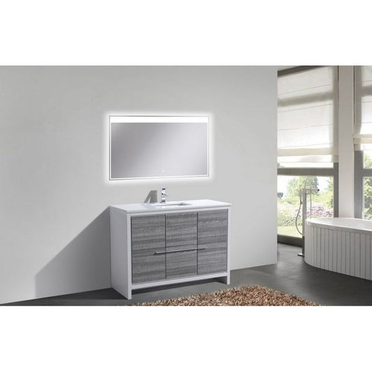KubeBath Dolce 48" Ash Gray Freestanding Modern Bathroom Vanity With Quartz Vanity Top & Ceramic Sink With Overflow